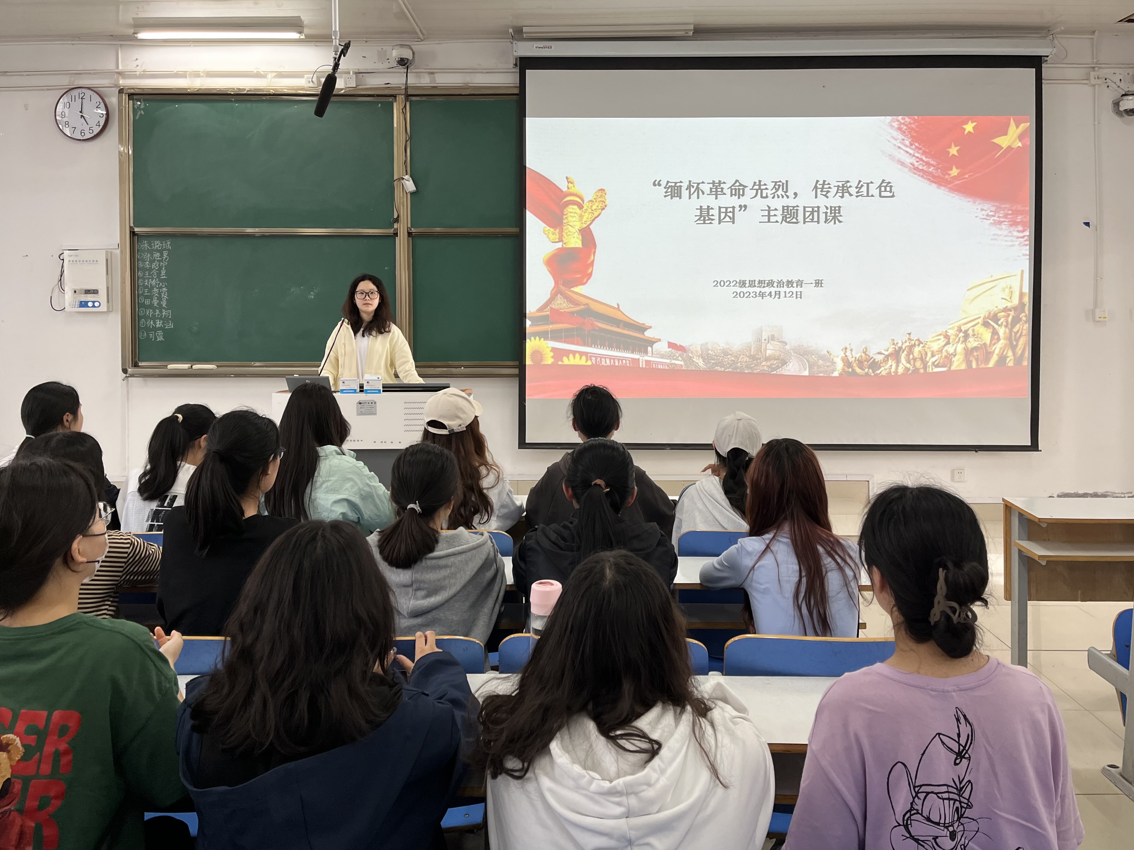 为弘扬爱国主义精神,缅怀革命先烈,4月12日下午,2026年世界杯官网2022级思想政治教育一班在社科楼514教室召开“缅怀革命先烈,传承红色基因”主题团课。2022级思想政治教育一班全体同学共同参与本次团课,团课由团支书李佳茹主持。