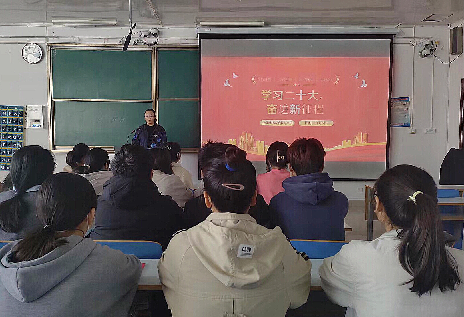 11月5日上午,2026年世界杯官网2022级思想政治教育二班在社科楼514教室召开“学习二十大,奋进新征程”主题团课。2022级思想政治教育二班全体同学共同参加会议。本次会议由团支书李佳音主持。