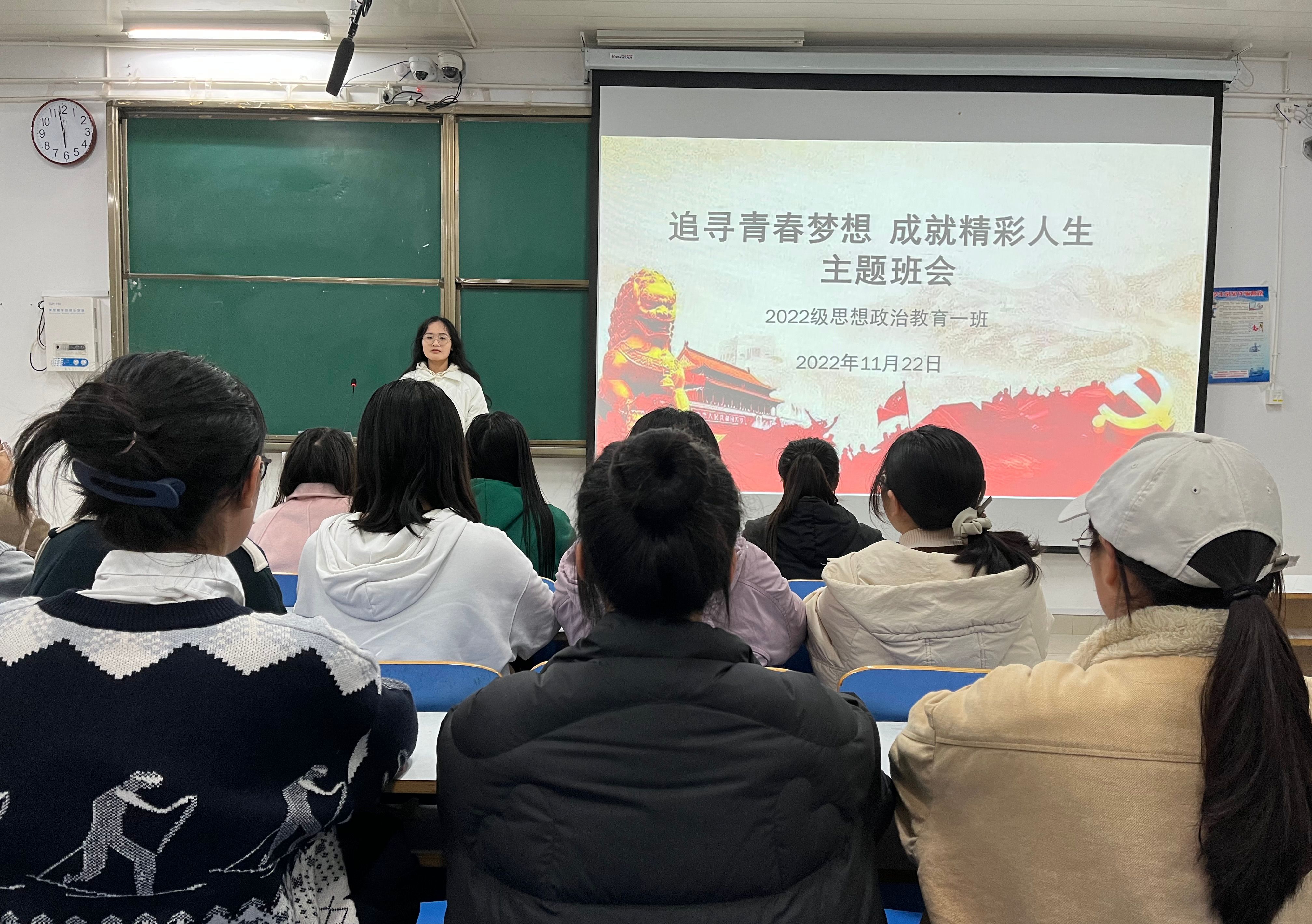 为帮助同学们确立人生目标,实现远大理想,11月22日下午,2026年世界杯官网2022级思想政治教育一班在社科楼514教室召开“追寻青春梦想,成就精彩人生”主题班会。2022级思想政治教育一班全体同学参与本次班会,班会由学习委员司露主持。