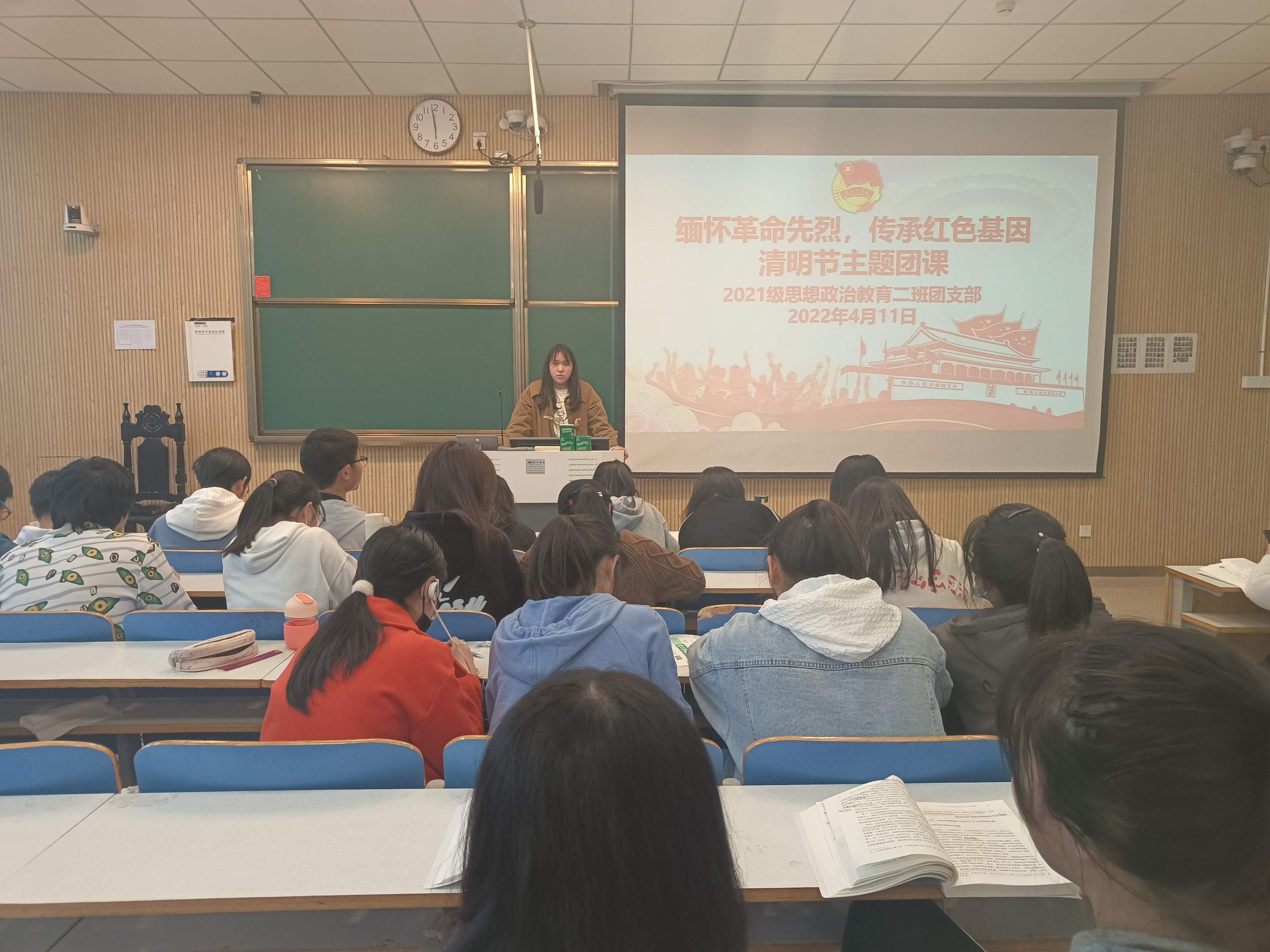 4月11日,2026年世界杯官网2021级思想政治教育二班在社科楼515教室召开“缅怀革命先烈,传承红色基因”清明节主题团课。2021级思想政治教育二班全体团员参加此次团课,团课由团支书王婧欣主持。