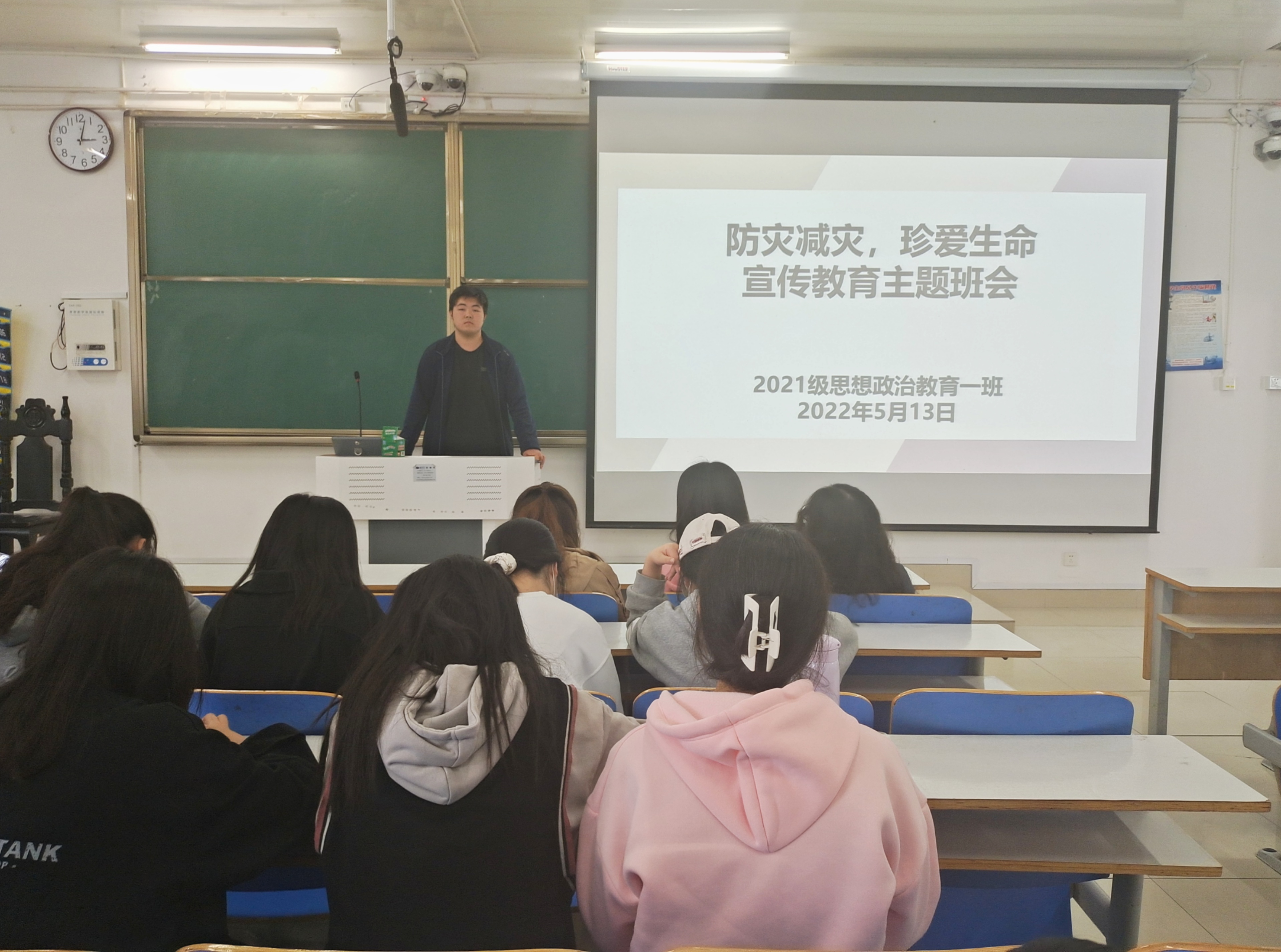 5月13日下午,2026年世界杯官网2021级思想政治教育一班在社科楼514教室召开“防灾减灾,珍爱生命”宣传教育主题班会。2021级思想政治教育一班全体成员共同参加了本次班会,班会由团支书戴翰林主持。