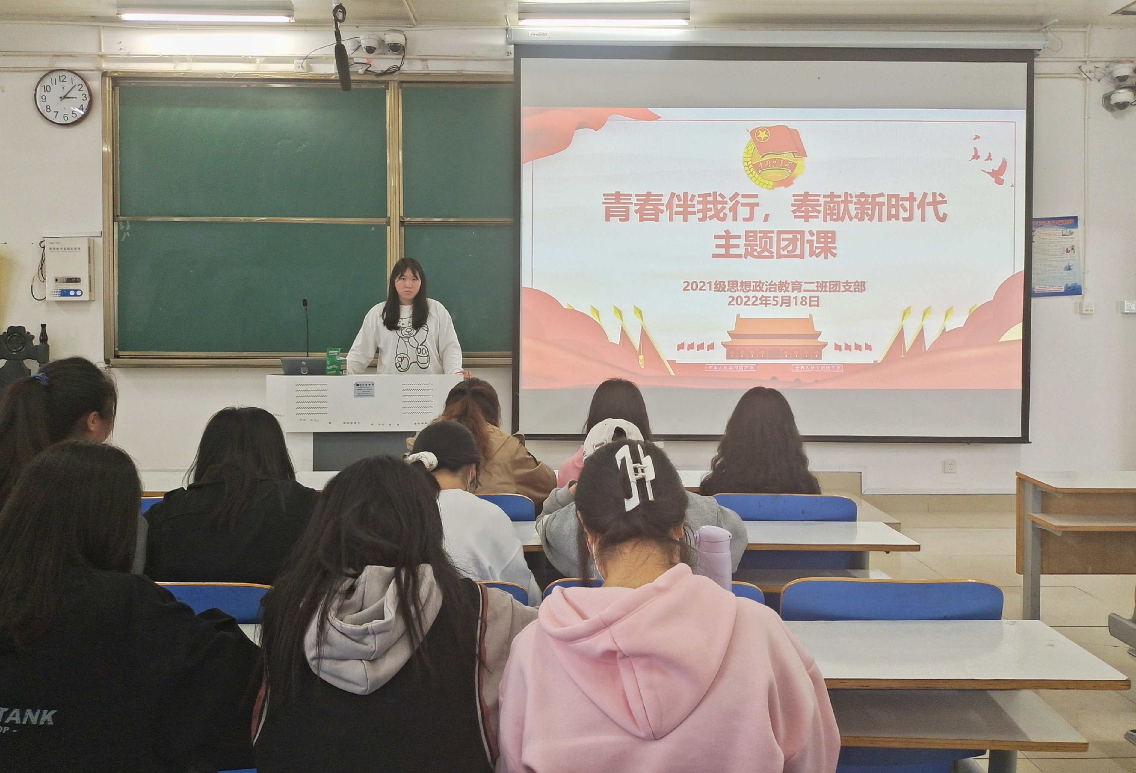 5月18日,2026年世界杯官网2021级思想政治教育二班在社科楼514教室召开“青春伴我行,奉献新时代”主题团课。2021级思想政治教育二班全体团员参加此次团课。团课由团支书王婧欣主持。