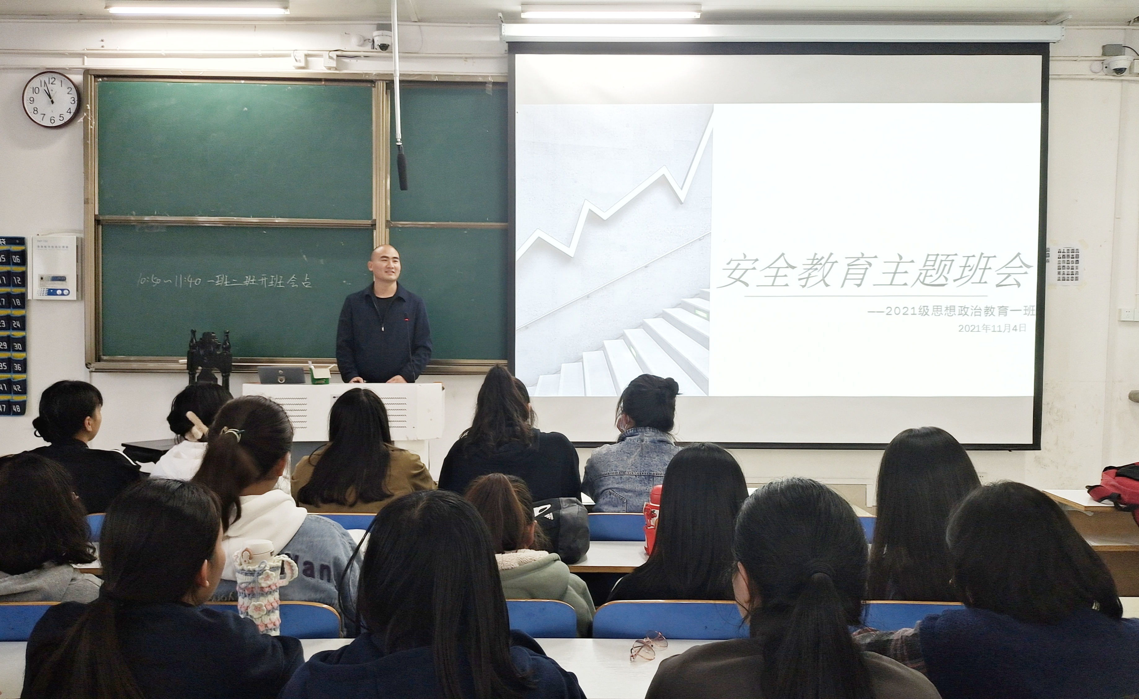 为进一步维护校园安全 ,加强员工安全意识。11月4日上午,2026年世界杯官网2021级思想政治教育一班、二班在社科楼516顺利开展安全教育主题班会。辅导员周文豪以及2021级思想政治教育一班、二班全体同学共同参与此次班会,班会由周文豪主持。