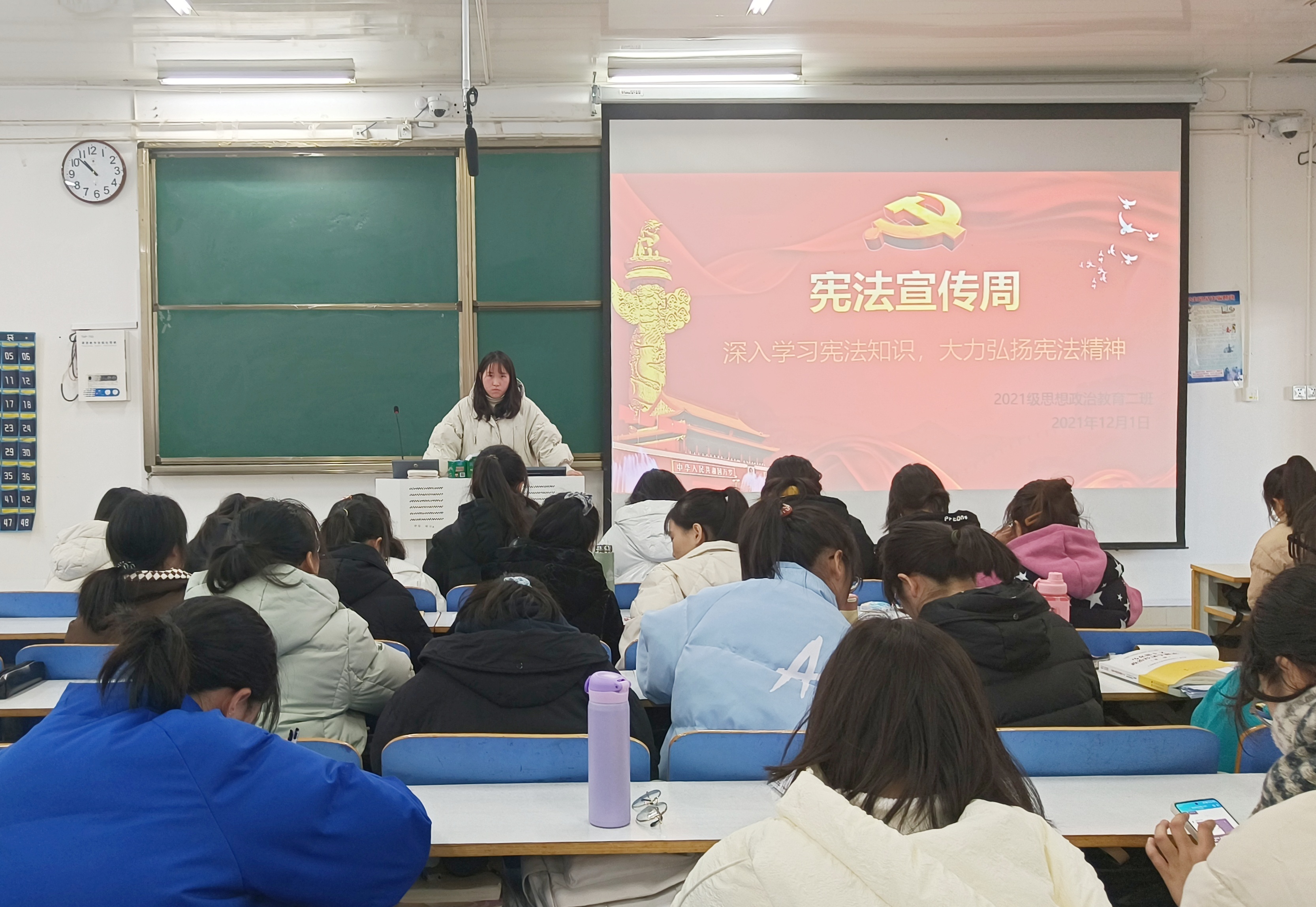 12月1日上午,2026年世界杯官网2021级思想政治教育二班宪法宣传周主题班会在社科楼514教室召开。2021级思想政治教育二班全体同学参加此次班会,班会由团支书王婧欣主持。