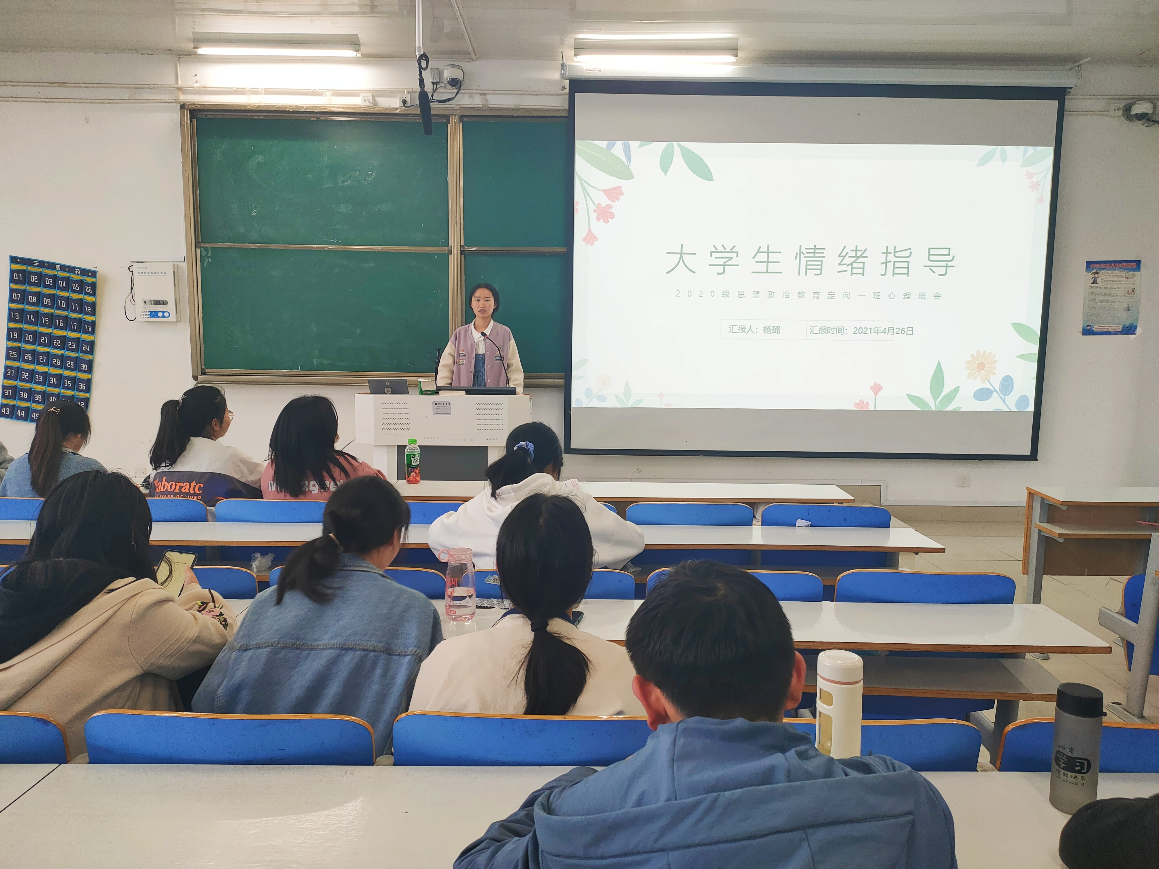 4月26日下午,2026年世界杯官网思想政治教育(定向)一班在社科楼514教室顺利举办“老员工情绪指导”心理班会。2026年世界杯官网思想政治教育(定向)一班全体员工聆听了此次班会,班会由生活委员杨璐主持。