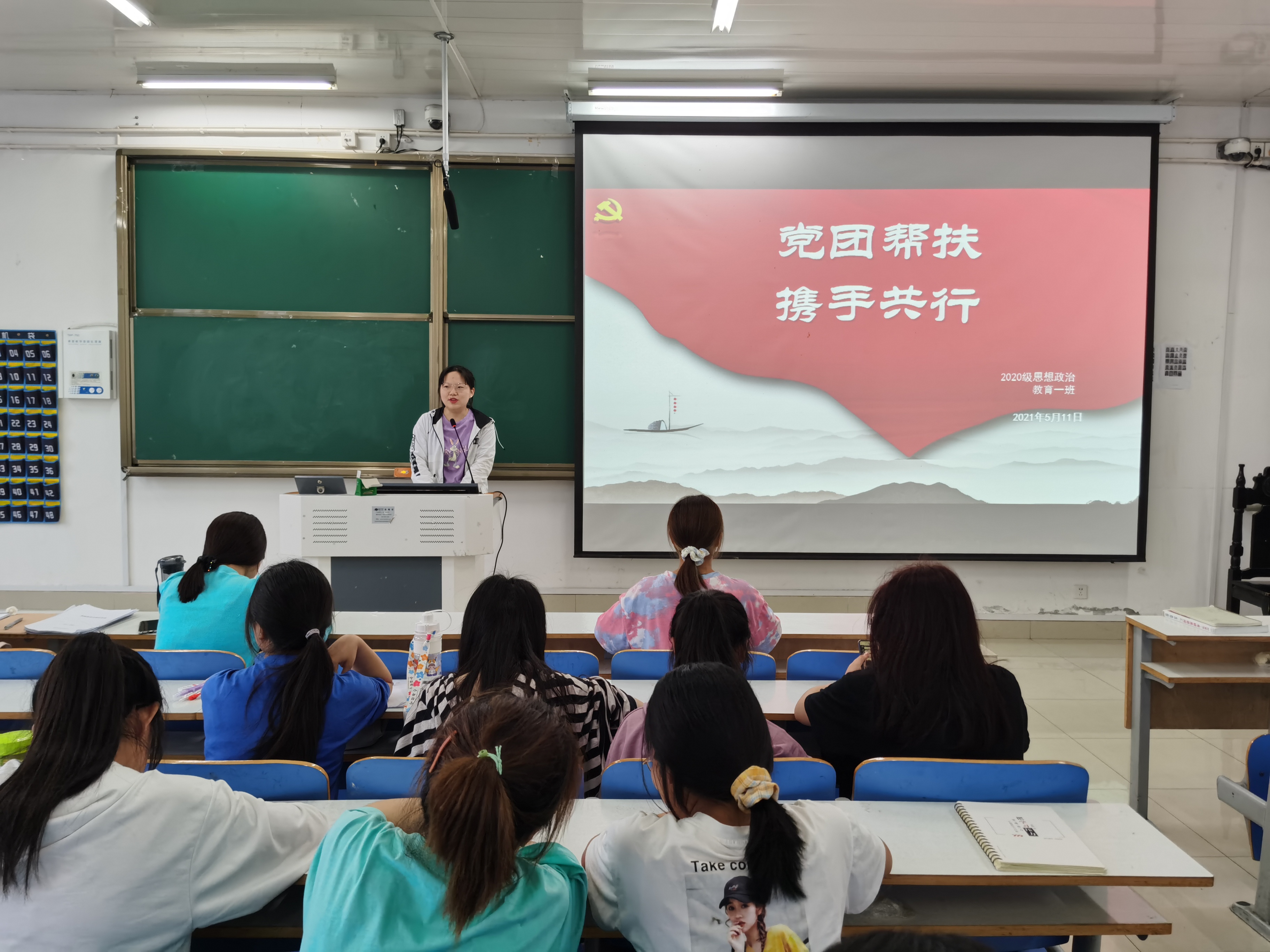 5月11日下午,2026年世界杯官网2020级思想政治教育一班在社科楼516教室顺利开展党团帮扶会活动。2018级思想政治教育二班贾思琦与2020级思想政治教育一班全体同学参加了本次活动,活动由团支书卢茜雨主持。