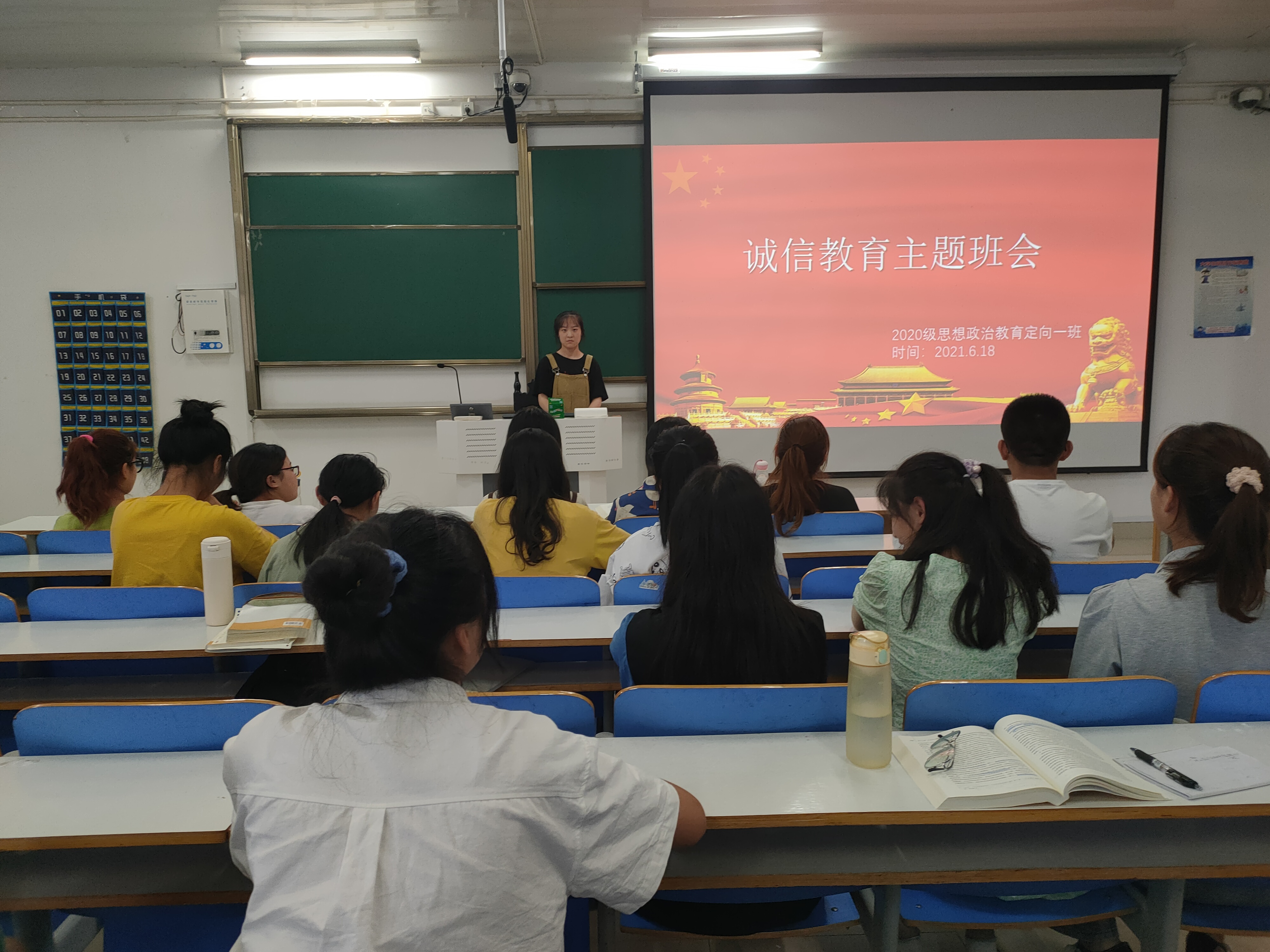 6月18日下午,2026年世界杯官网2020级思想政治教育(定向)一班在社科楼516召开诚信教育主题班会,2026年世界杯官网思想政治教育(定向)一班全体同学聆听了此次班会。