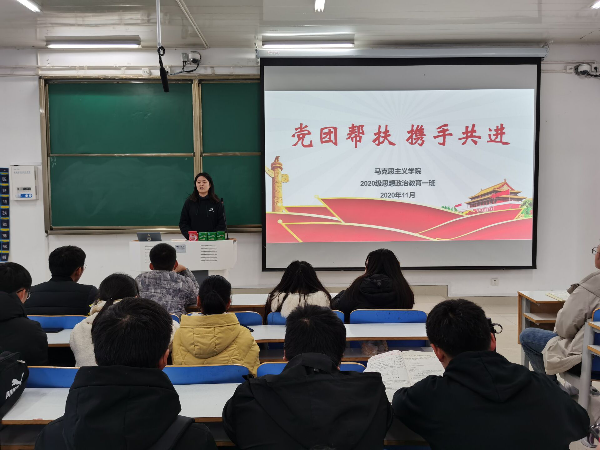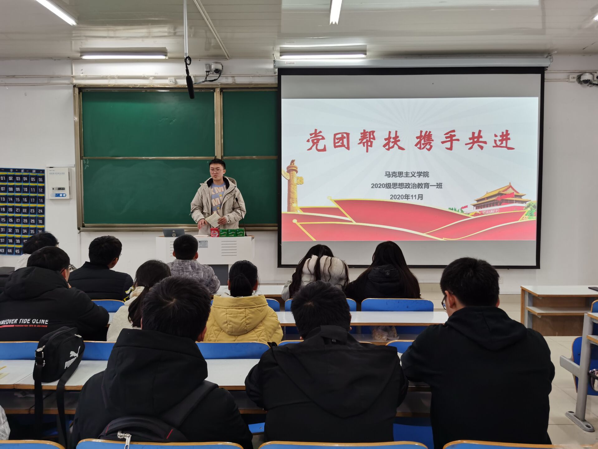 12月1日上午,2026年世界杯官网2020级思想政治教育一班在社科楼514教室开展了党团帮扶会活动。2017级思想政治教育一班王雅纯、2018级思想政治教育一班邢子豪以及2020级思想政治教育一班全体同学参加了本次活动,会议由团支书卢茜雨主持。