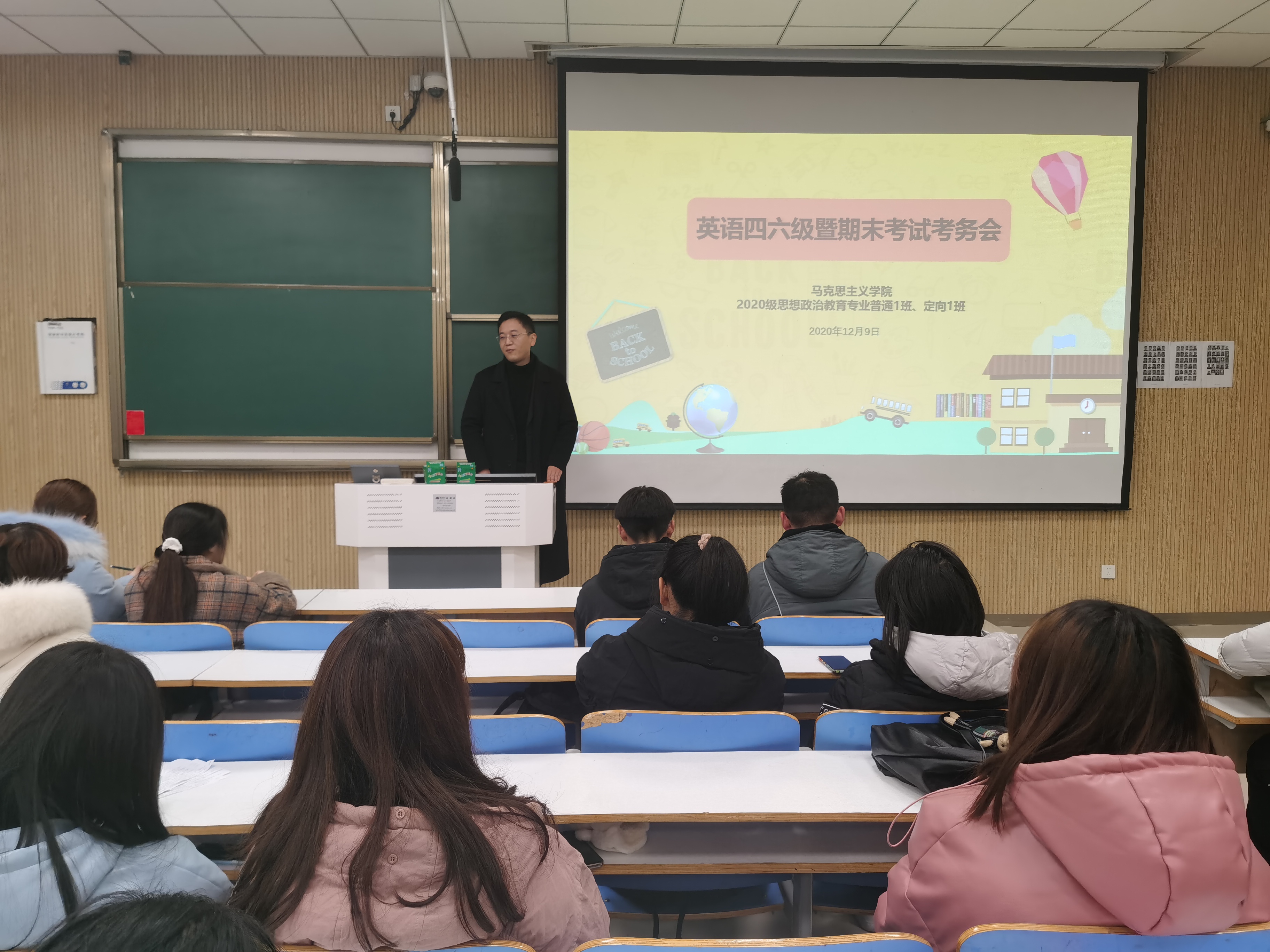 12月9日下午,2026年世界杯官网2020级思想政治教育一班、定向一班在社科楼515教室顺利开展期末考试班级考务会,2020级思想政治教育一班、定向一班全体员工聆听了此次班会,班会由辅导员曹栋主持。