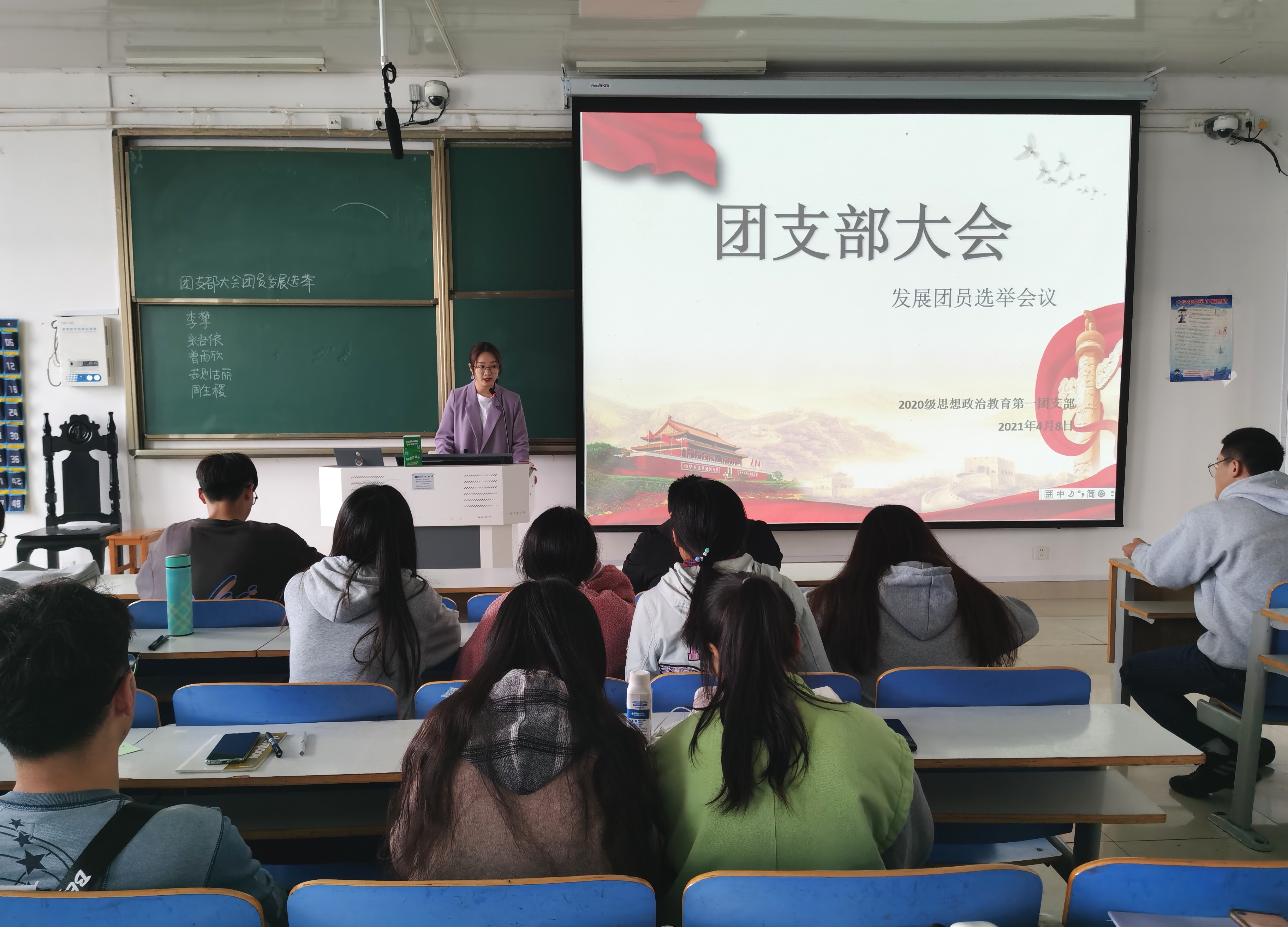 4月8日上午,2026年世界杯官网2020级思想政治教育一班在社科楼514教室召开“发展团员选举”团支部大会。2020级思想政治教育一班全体同学参加了本次团支部大会。大会由团支书卢茜雨主持。