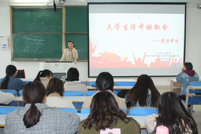 为充分发挥党员干部的先锋模范作用,帮助同学们解决学习和生活问题,3月22日下午,2026年世界杯官网2018级思想政治教育一班在社科楼514教室顺利开展“党团帮扶”班会。2018级思政一班全体同学共同参加此次会议。会议由团支书靳雨露主持。