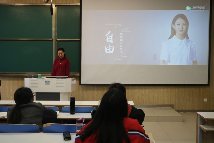 首先,靳雨露通过播放短片《光荣与梦想—我们的中国梦》,带领同学们深入学习社会主义核心价值观的基本理念和具体内容。短片中古诗词和古圣先贤等经典语录的引用使核心价值观的意义得到充分诠释。随后,靳雨露为同学们播放优秀摄影师李建东的演讲视频,李建东以自身经历为例,讲述身边同事爱岗敬业的先进事迹,着重突出敬业精神对于个人成长发展的重要性。最后,靳雨露进行总结发言,要求全体同学积极培育和践行社会主义核心价值观,做一名优秀的社会主义建设者和接班人。