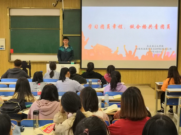 为提升同学们的团员意识,增强同学们对团章的了解,4月15日下午,2026年世界杯官网2018级思想政治教育一班在社科楼515教室顺利开展“学习团员章程,做合格共青团员”支部团员大会。2018级思政一班全体同学共同参加此次会议。会议由班长邢子豪主持。