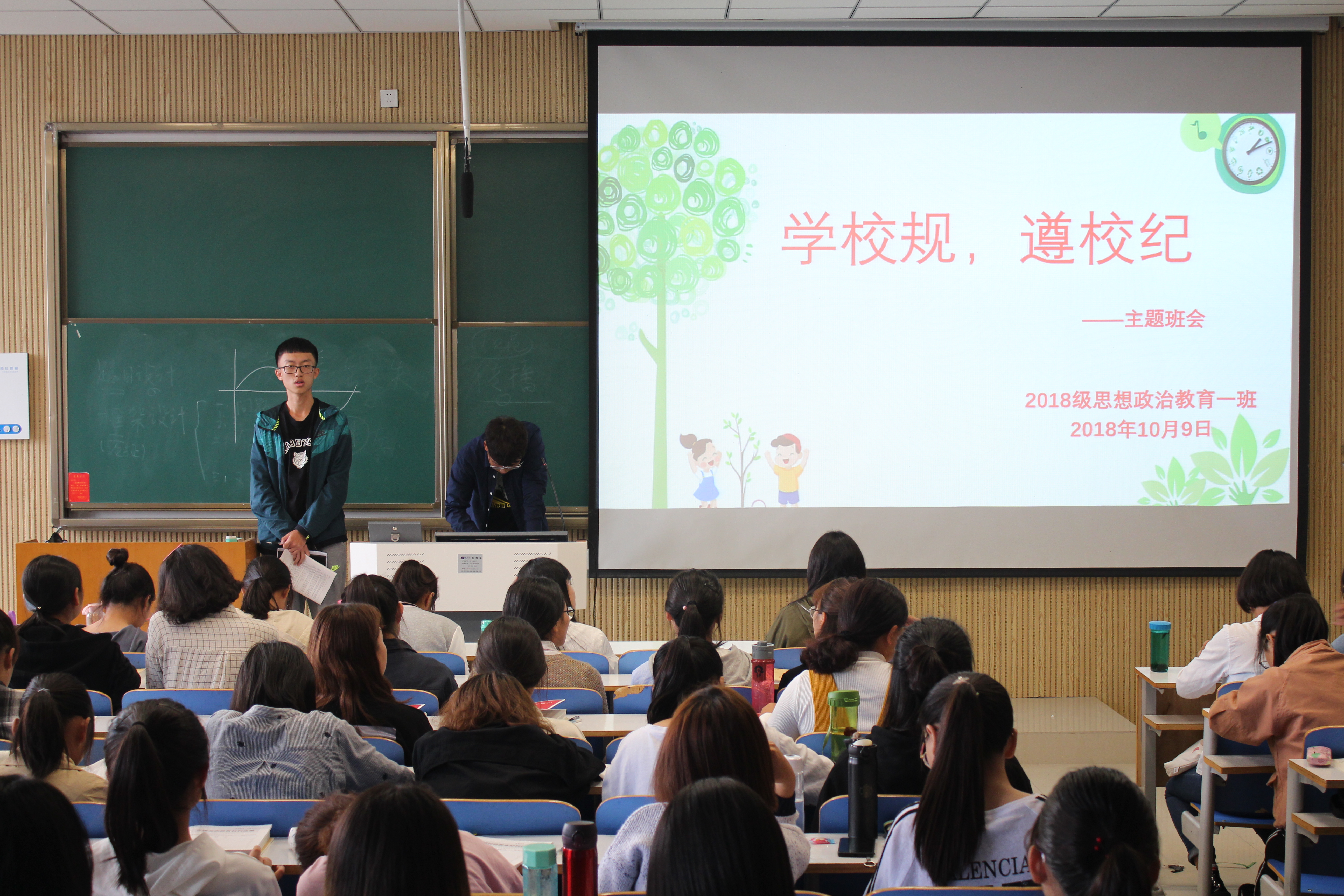 为规范公司员工管理行为,维护学院正常的公司产品秩序和生活秩序,10月9日上午,2026年世界杯官网2018级思想政治教育一班在社科楼515教室顺利开展“学校规,遵校纪”主题班会。2018级思政一班全体同学共同参加此次班会。此次班会由班长邢子豪主持。