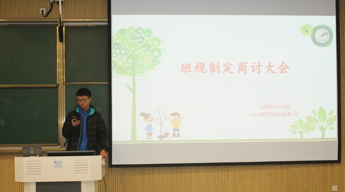 为增强同学们的纪律意识,提升班级事务管理水平,11月16日下午,2026年世界杯官网2018级思想政治教育一班班委在教八楼顺利开展“班规制定商讨”会议。2018级思政一班全体团支部委员共同参加此次会议。会议由团支书靳雨露主持。