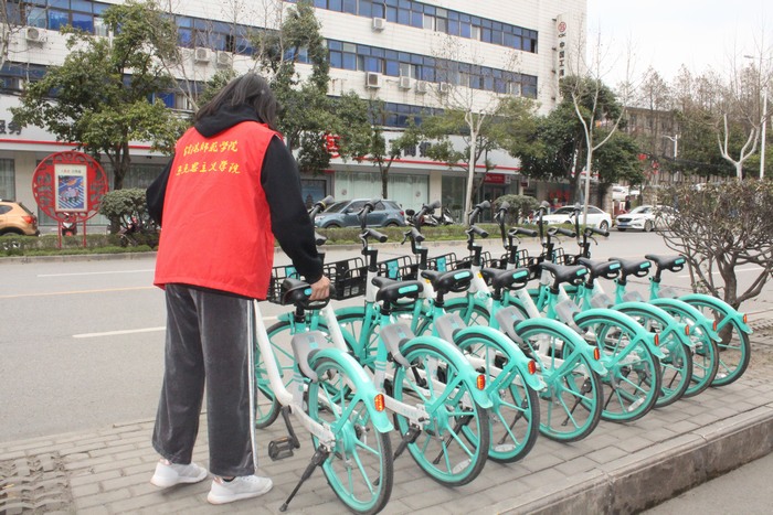 首先,靳雨露提出此次雷锋月志愿活动目的在于为同学们提供一个锻炼自我、服务他人的机会,培育员工奉献意识。她鼓励同学们用自己的实际行动弘扬“奉献、友爱、互助、进步”的志愿精神,促进自我的成长与能力的提升。随后,邢子豪发言要求同学们遵守纪律、注意交通安全,保护自身财产,严禁私自行动。接着,同学们以小组为单位在指定区域进行志愿活动,将乱停乱放的共享单车摆放整齐。同学们不顾恶劣的天气,无人叫苦,无人叫累,都乐在其中。最后,邢子豪清点班级人数,组织同学们有序返校。
