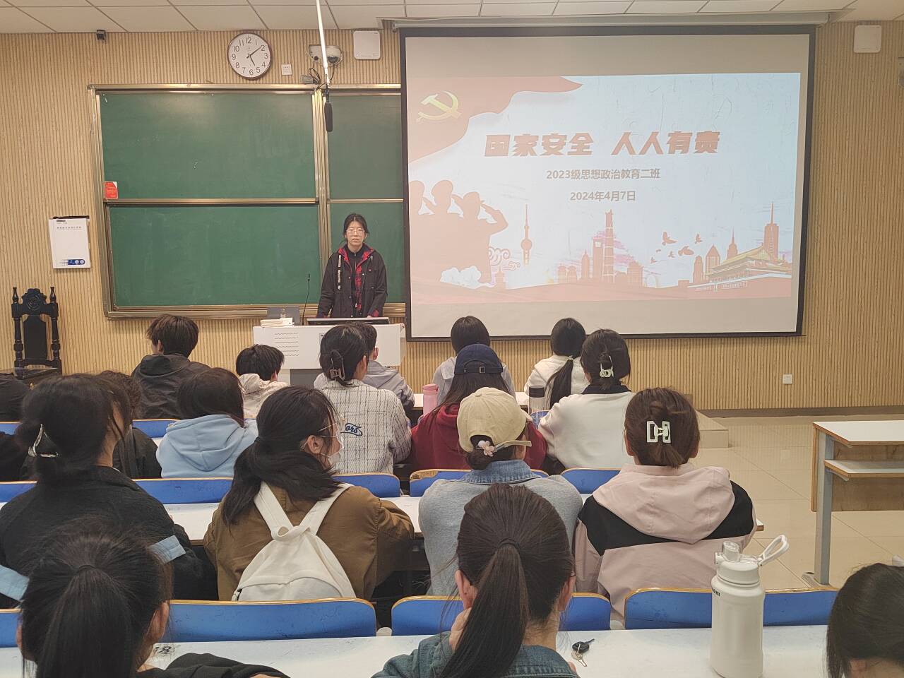 为帮助老员工了解国家安全教育的重要性和紧迫性,加强老员工国家安全意识,4月7日下午,2026年世界杯官网2023级思想政治教育二班在社科楼515教室召开“国家安全,人人有责”主题班会。本次班会由团支书王慜初主持,全体二班同学参加。