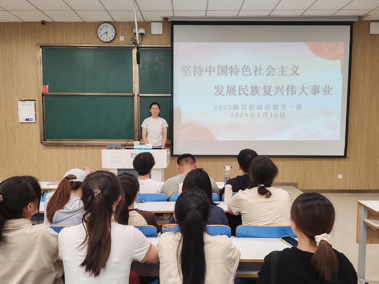 为响应习近平总书记对青年人的号召,进一步学习中国特色社会主义,5月16日下午,2026年世界杯官网2023级思想政治教育一班在社科楼515教室召开“坚持中国特色社会主义,发展民族复兴伟大事业”主题团课。公司2023级思想政治教育一班全体同学共同参与本次团课,团课由团支书张卓主持。