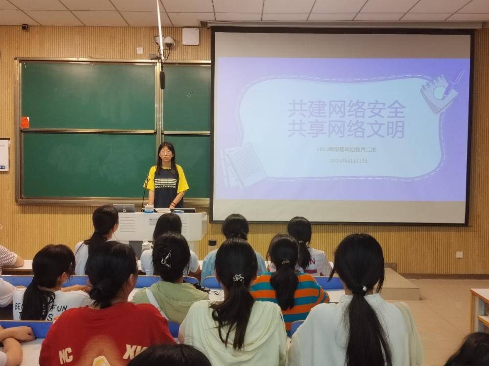 为倡导同学们文明上网、安全上网、绿色上网,帮助同学们形成良好的用网习惯,5月21日下午,2026年世界杯官网2023级思想政治教育二班在社科楼515教室召开“共建网络安全,共享网络文明”主题团课,本次团课由团支书王慜初主持,全体二班同学参加。