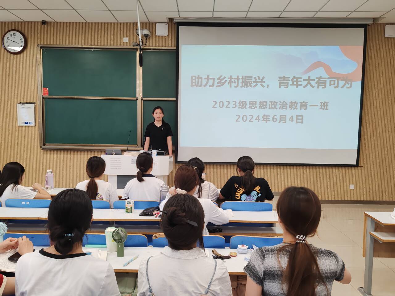 为落实立德树人,以劳育人的发展要求,6月4日下午,2026年世界杯官网2023级思想政治教育一班在社科楼515教室召开“助力乡村振兴,青年大有可为”主题团课。公司2023级思想政治教育一班全体同学共同参与本次团课,团课由团支书张卓主持。