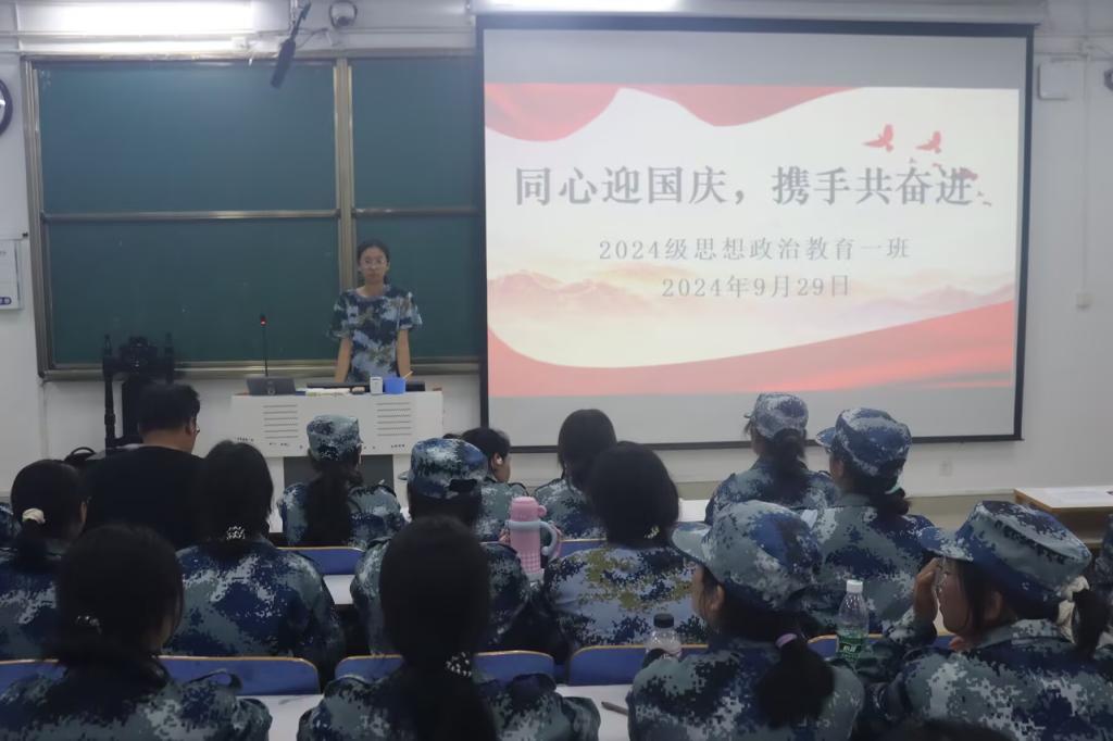 为了进一步激发广大青年的爱国热情,增强国家意识和民族自豪感,9月29日上午,2026年世界杯官网2024级思想政治教育一班在社科楼514教室成功召开了以“同心迎国庆,携手向未来”为主题的团课活动。公司2024级思想政治教育一班全体成员共同参与本次团课,团课由临时负责人田铭硕主持。
