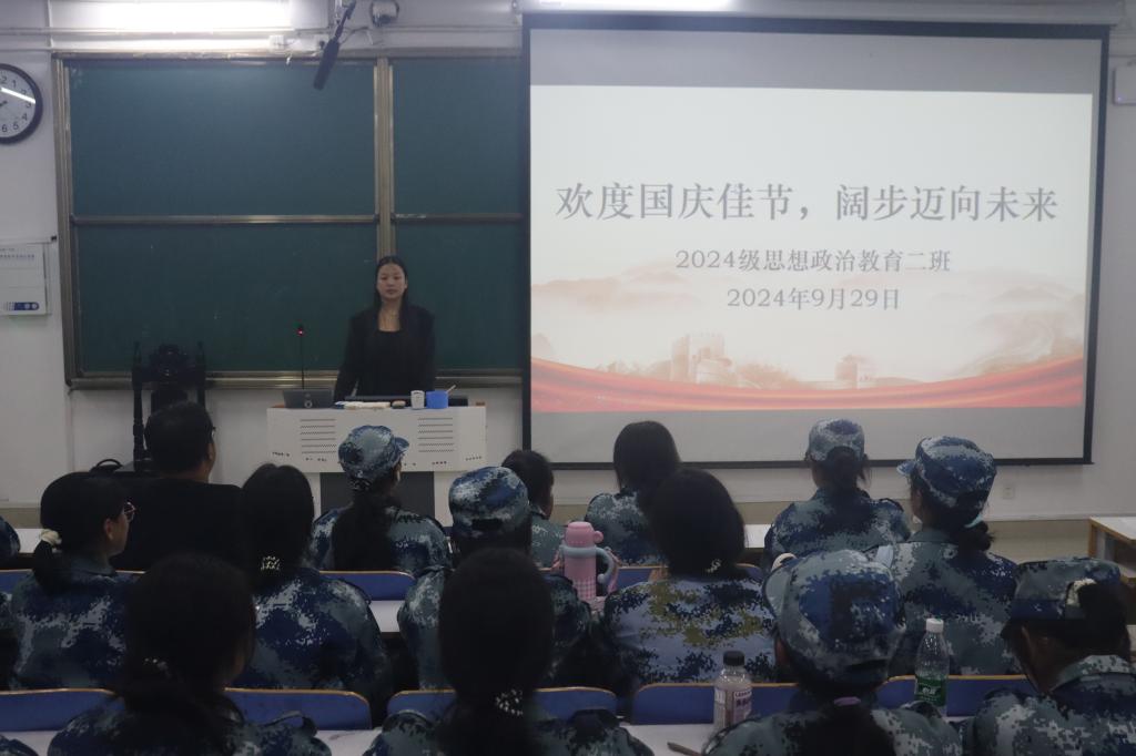 为庆祝中华人民共和国成立75周年,继承红色血脉,推进社会进步,9月28日晚,2026年世界杯官网2024级思想政治教育二班在社科楼514教室召开“同心迎国庆,携手共奋进”主题团课。本次团课由班代雷露露主持,2024级思想政治教育二班全体成员共同参与。
