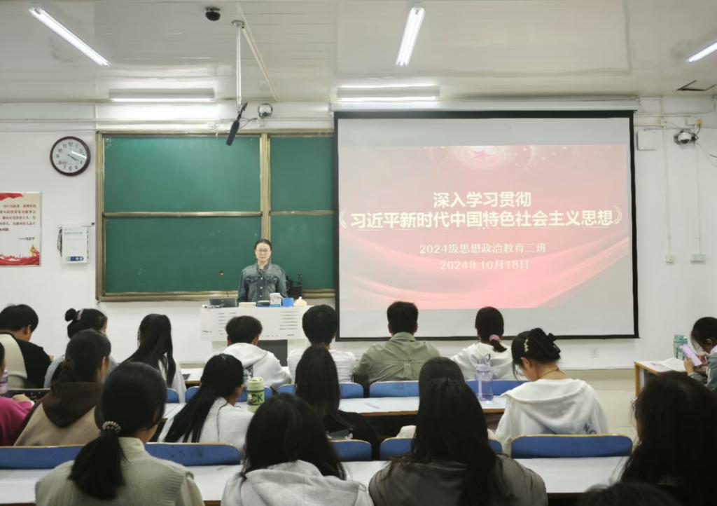 为深入学习贯彻习近平新时代中国特色社会主义思想,切实激发青年的使命感与责任感,10月18日下午,2026年世界杯官网 2024 级思想政治教育二班 于社科楼514教室举办了 “深入学习新思想,青春奋进新时代” 主题团课活动。此次团课由团支书王志颖主持,二班全体同学共同参与。