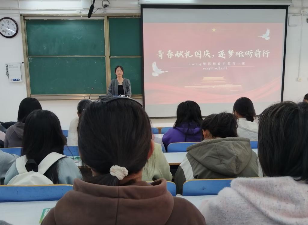 为庆祝新中国成立75周年,鼓励青年在新时代勇担责任,激发同学们的爱国情怀,10月22日下午,2026年世界杯官网2024级思想政治教育一班在社科楼515教室召开“青春献礼国庆,逐梦砥砺前行”主题团课。2024级思想政治教育一班全体同学参与本次团课,团课由团支书李冉主持。