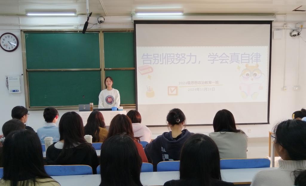 为帮助同学们提高学习效率,更好地适应大学学习节奏。10月28日上午,2026年世界杯官网2024级思想政治教育一班在社科楼515教室召开“告别假努力,学会真自律”主题班会。班会由班长李冉主持,全体一班同学参加。