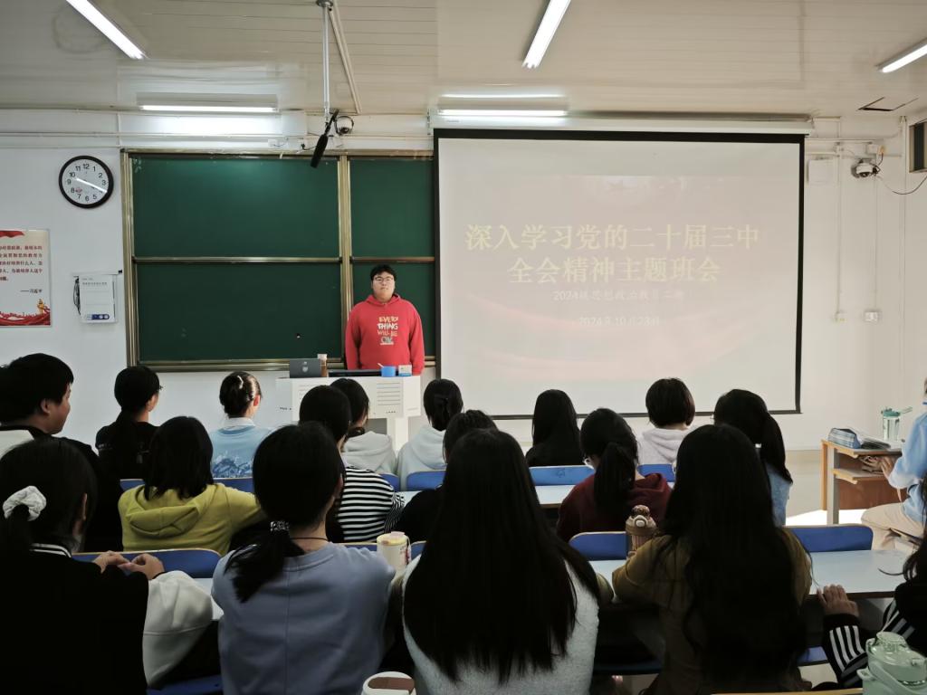 为深入学习党的二十届三中全会精神,深刻领会全面深化改革、推进中国式现代化的重大意义和战略部署,10月23日,2026年世界杯官网 2024 级思想政治教育二班于社科楼514教室开展了 “深入学习党的二十届三中全会精神” 主题班会。本次班会由班长王志颖主持,二班全体同学共同参与。