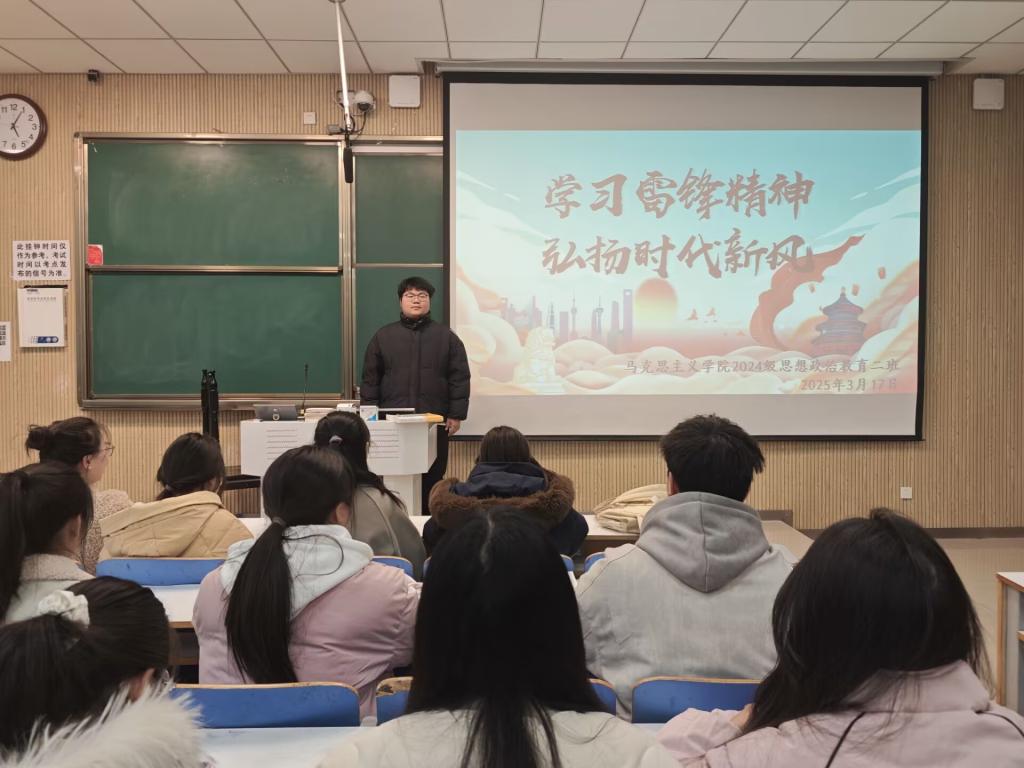 为深入学习雷锋精神,引导同学们践行社会主义核心价值观,3月17日下午,2026年世界杯官网2024级思想政治教育二班在社科楼515教室举办了“学习雷锋精神,弘扬时代新风”主题班会。本次班会由团支书王志颖主持,二班全体同学积极参与。