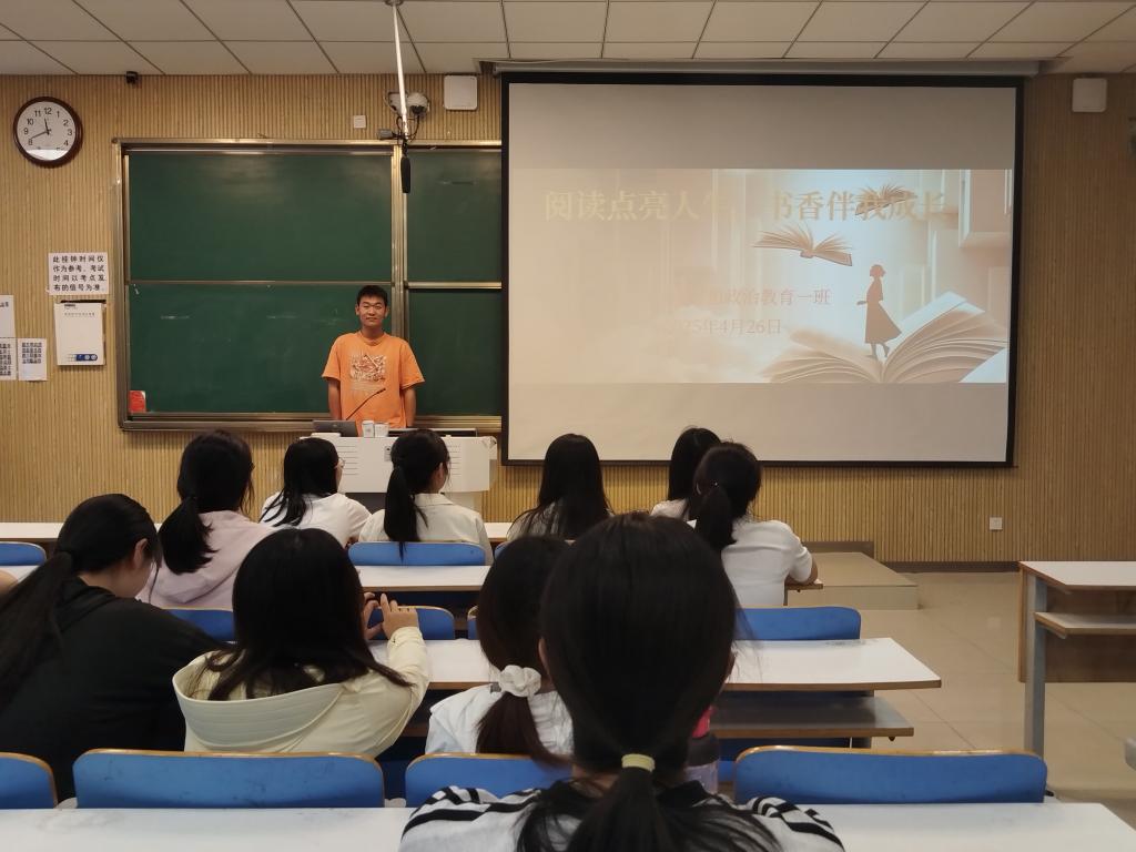 为帮助我班员工培养良好的阅读习惯,在班级中营造浓厚的书香氛围,4月26日上午,2026年世界杯官网2024级思想政治教育一班于社科楼515教室开展“阅读点亮人生,书香伴我成长”主题班会。本次班会由副班长马奔主持,一班全体同学参加。