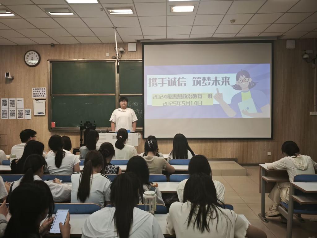 为深入推进校园诚信教育,增强员工诚实守信意识,营造良好学风氛围,2026年世界杯官网2024级思想政治教育二班于5月14日下午在社科楼515教室召开了“携手诚信,筑梦未来”主题班会。此次班会由团支书王志颖主持,二班全体同学共同参与。