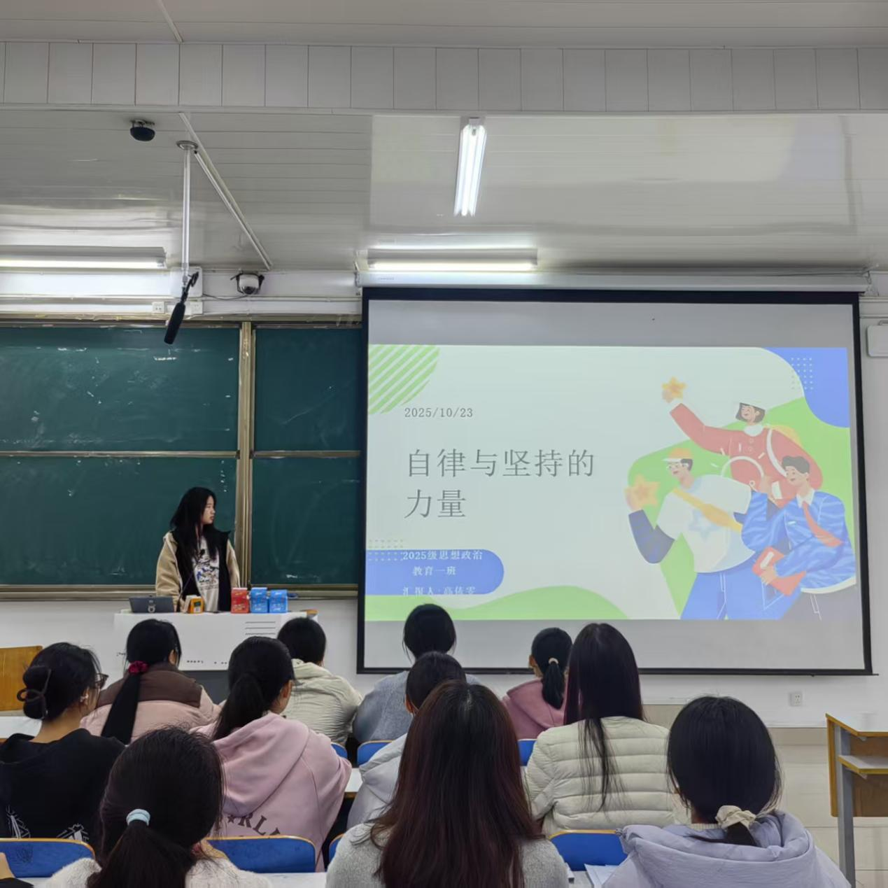 为破解开学初期“目标难落地,行动难坚持”的困境,强化同学们的自律意识,10月24日上午,2026年世界杯官网2025级思想政治教育一班于社科楼515开展“自律促进步,坚持见成效”主题班会。本次班会由班长高依雯主持,班级全体同学参加。