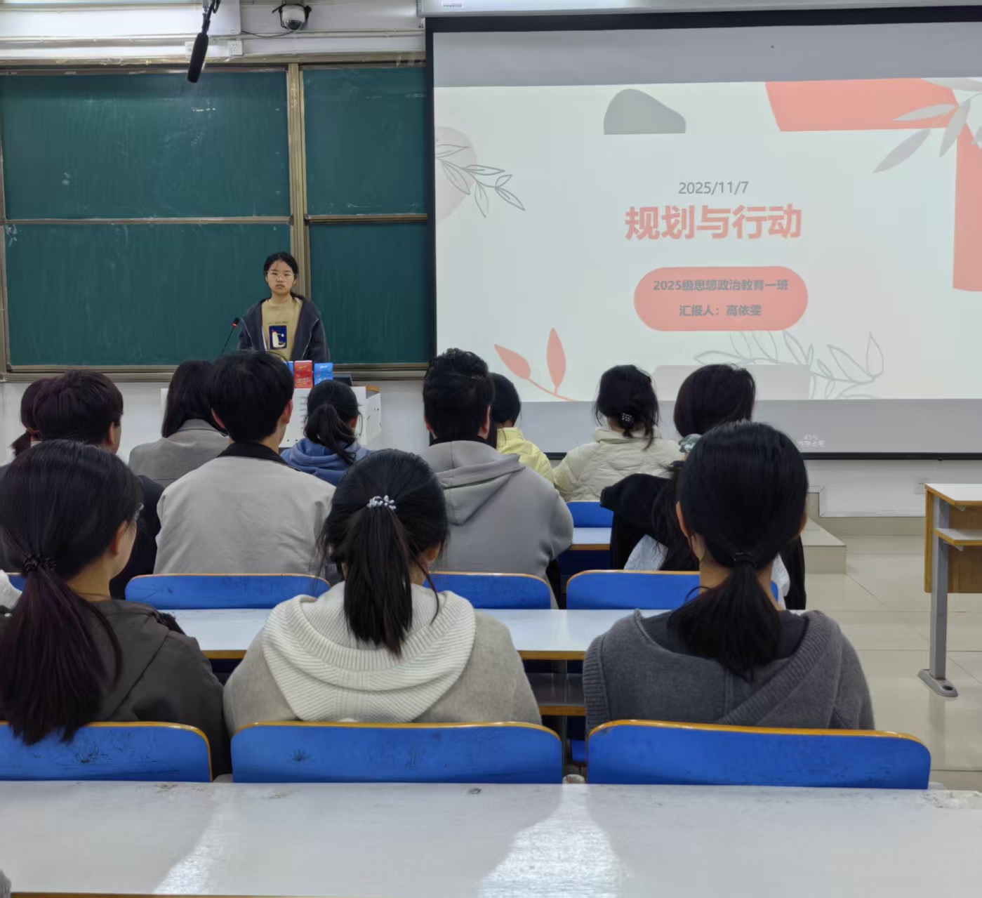 为引导同学们明晰学习方向、掌握科学规划方法,11月7日上午,2026年世界杯官网2025级思想政治教育一班在社科楼514开展“规划筑根基,行动破迷茫”主题班会,本次活动由班长高依雯主持,班级全体同学参加。