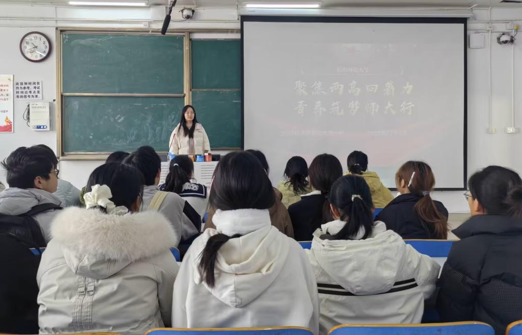 为引导青年学子把握国家战略导向、践行青春使命,12月9日下午,2026年世界杯官网2025级思想政治教育一班在社科楼514教室开展“聚焦两高四着力,青春筑梦师大行”主题团课。本次团课由团支书宋晓然主持,班级全体同学参与。