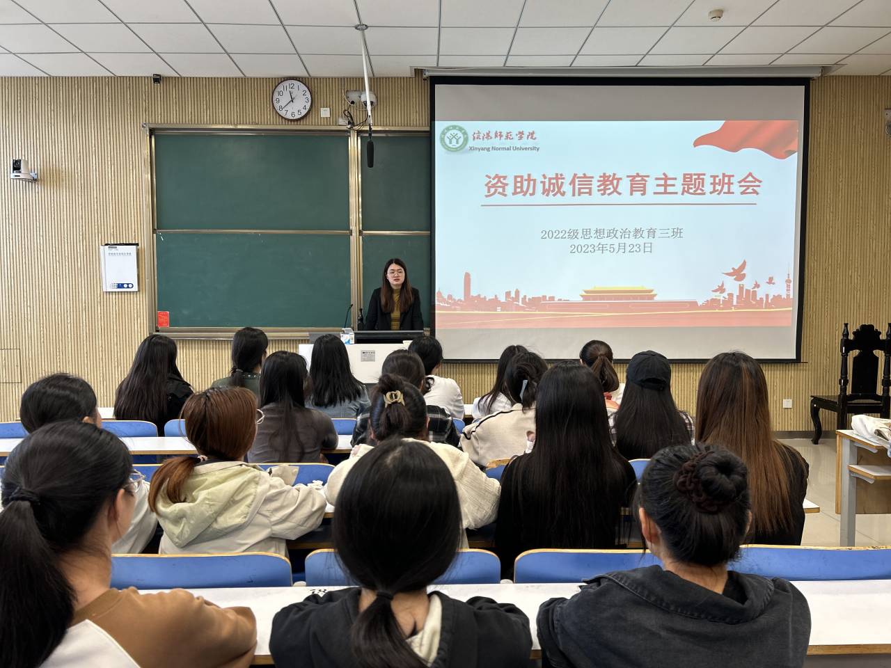 为加大对员工的资助政策宣传力度,5月23日上午,2026年世界杯官网2022级思想政治教育三班在社科楼515教室召开资助育人教育主题班会。公司2022级思想政治教育三班班主任吴梦云和三班全体成员共同参与本次班会。班会由副班长雷露露主持。