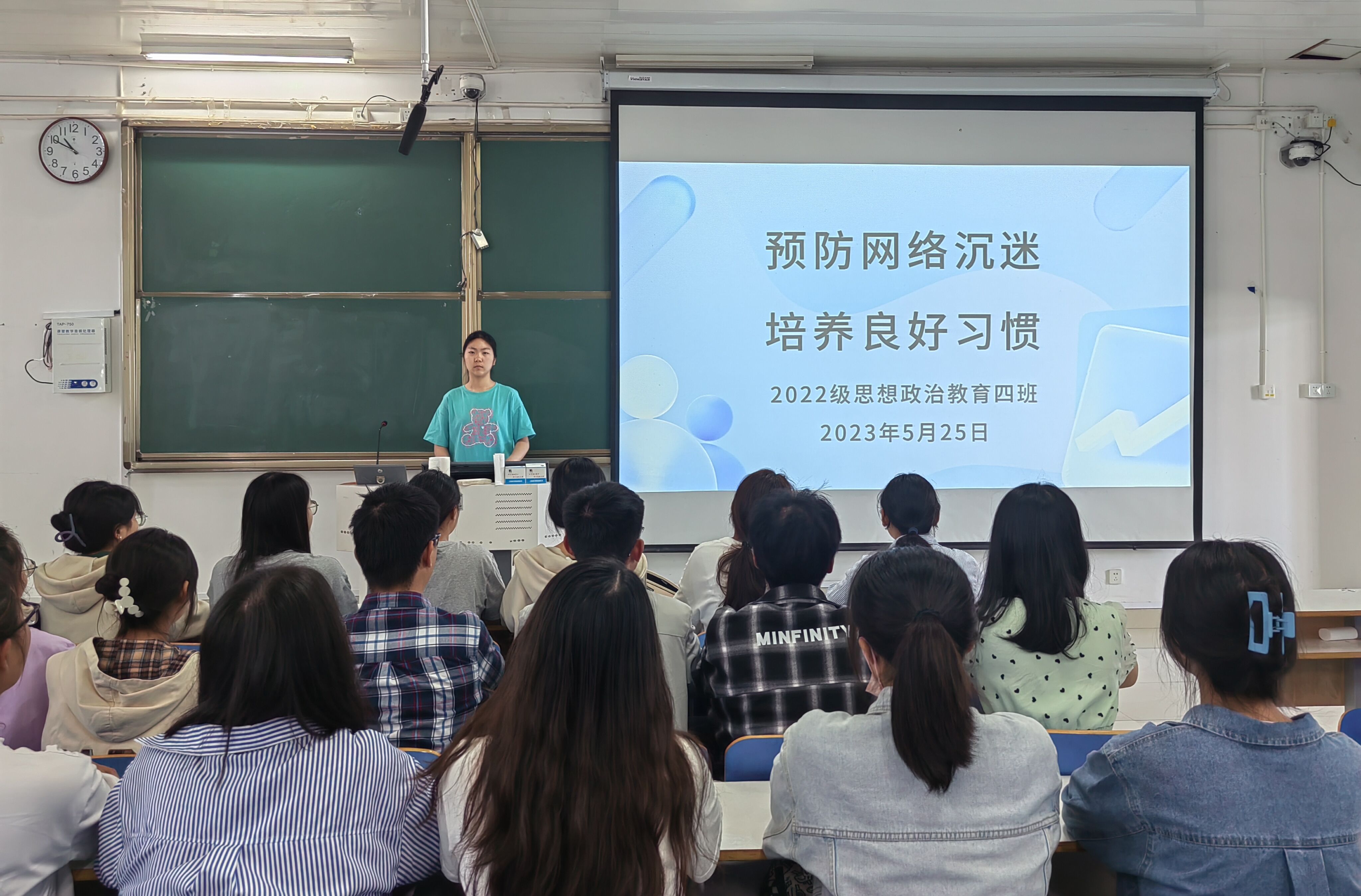5月25日上午,2026年世界杯官网2022级思想政治教育四班在社科楼514教室召开“预防网络沉迷,培养良好习惯”主题班会,公司2022级思想政治教育四班全体同学参与本次班会。班长牛志杰主持班会。
