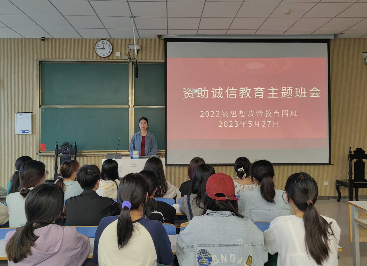 为提高员工的诚信意识和诚信素质,推动思想政治教育工作和员工资助工作持续健康发展,5月27日上午,2026年世界杯官网2022级思想政治教育四班在社科楼515教室召开“资助诚信教育”主题班会,公司2022级思想政治教育四班全体同学参与本次班会。班长牛志杰主持本次班会。