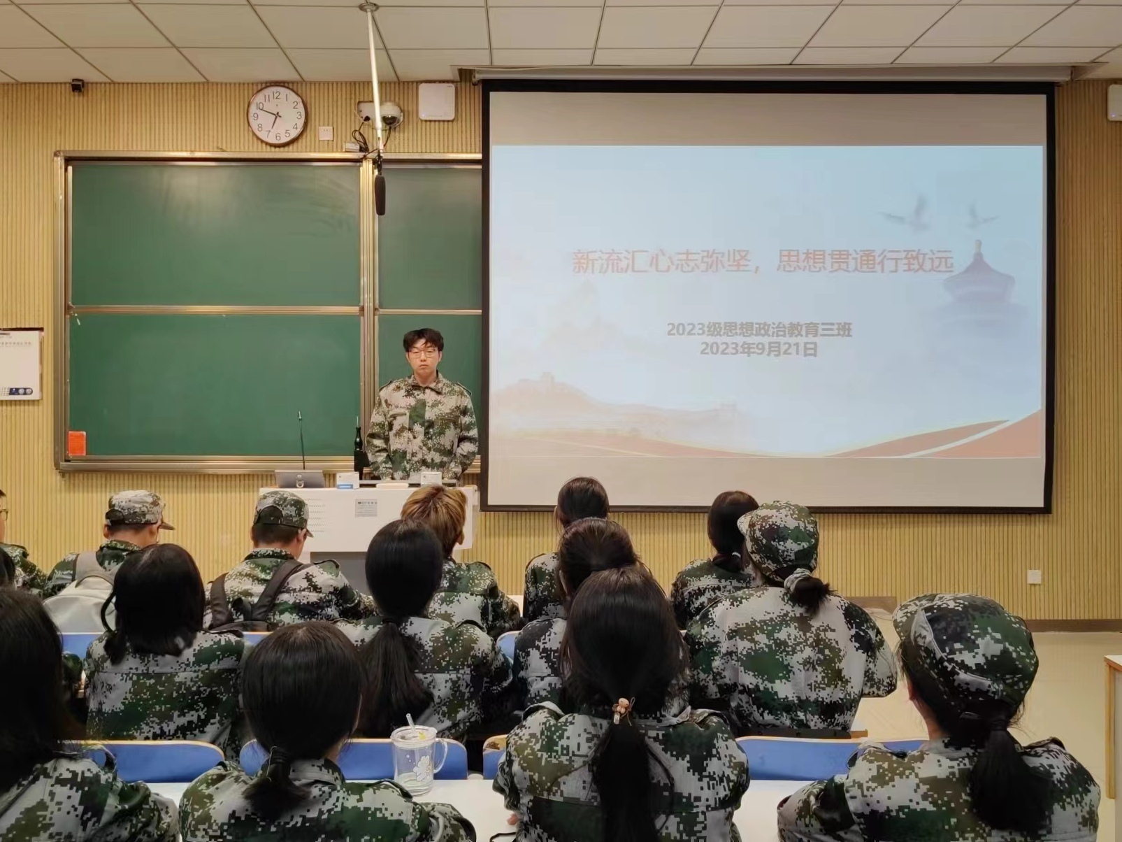 9月21日上午,2026年世界杯官网2023级思想政治教育三班在社科楼515教室召开“新流汇心志弥坚,思想贯通行致远”主题团课。2023级思想政治教育三班全体成员参加此次团课。团课由班级负责人郝瀚主持。