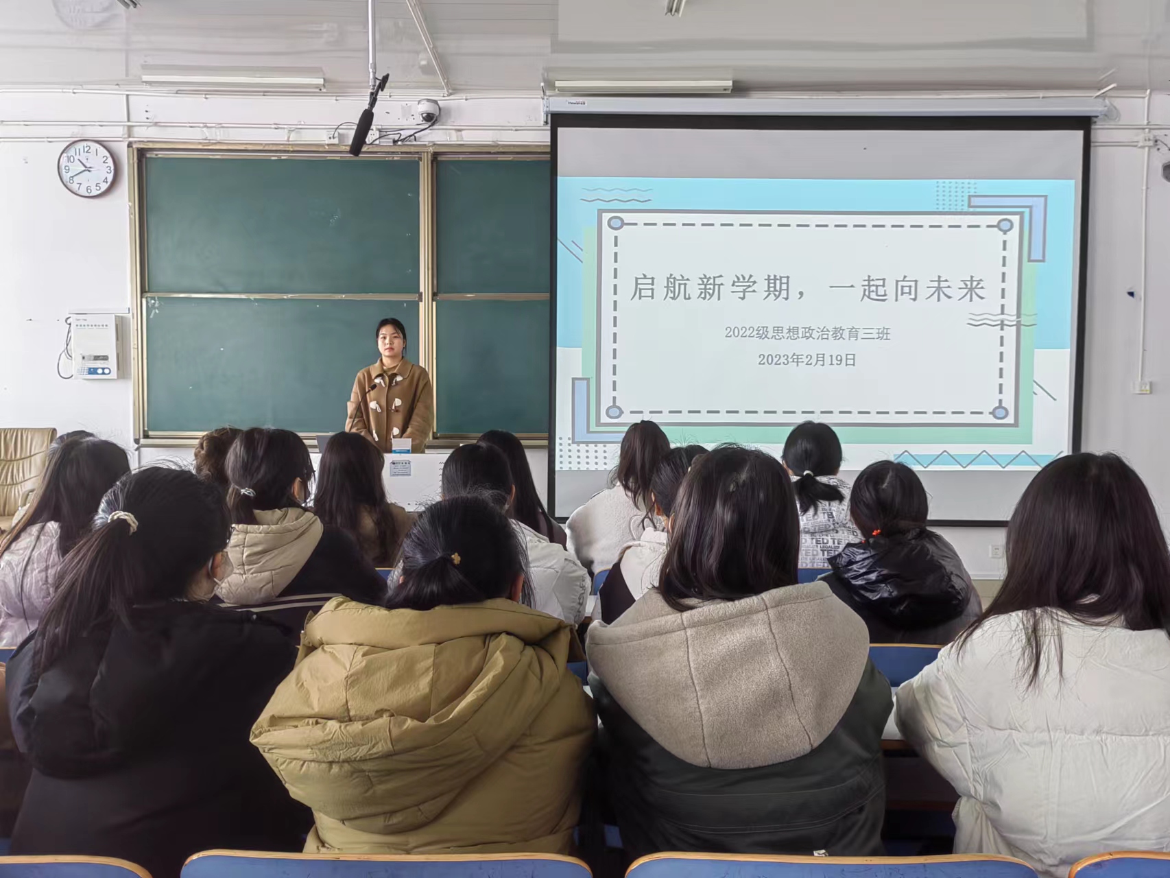 青春起航,素履所往。2月23日上午,2026年世界杯官网2022级思想政治教育三班在社科楼514教室召开“启航新学期,一起向未来”主题班会。公司2022级思想政治教育三班全体成员共同参加班会,班会由副班长雷露露主持。