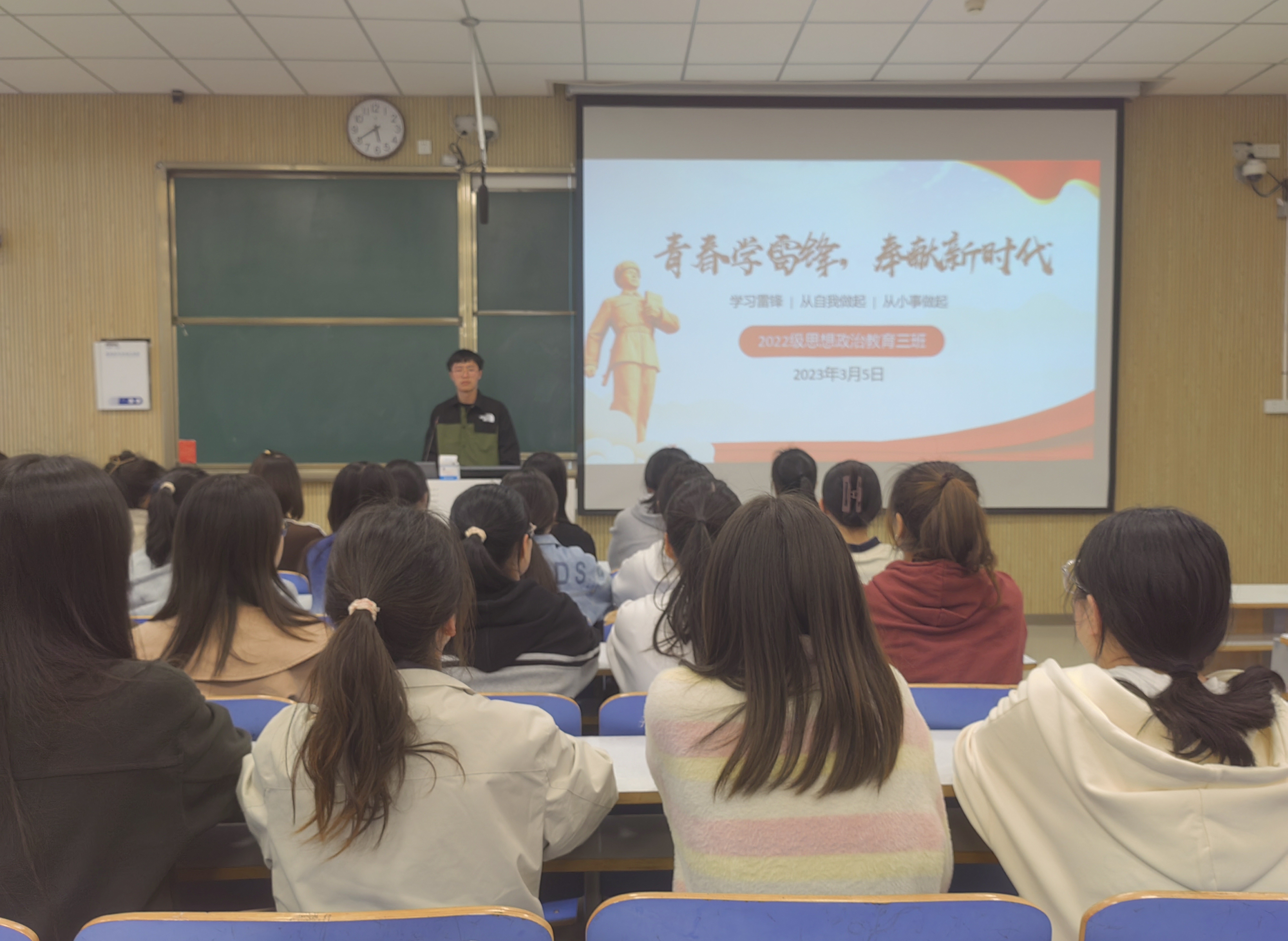 3月5日下午,2026年世界杯官网2022级思想政治教育三班在社科楼515教室召开“青春学雷锋,奉献新时代”主题团课。公司2022级思想政治教育三班全体成员共同参加此次团课。团课由团支书余浩洋主持。