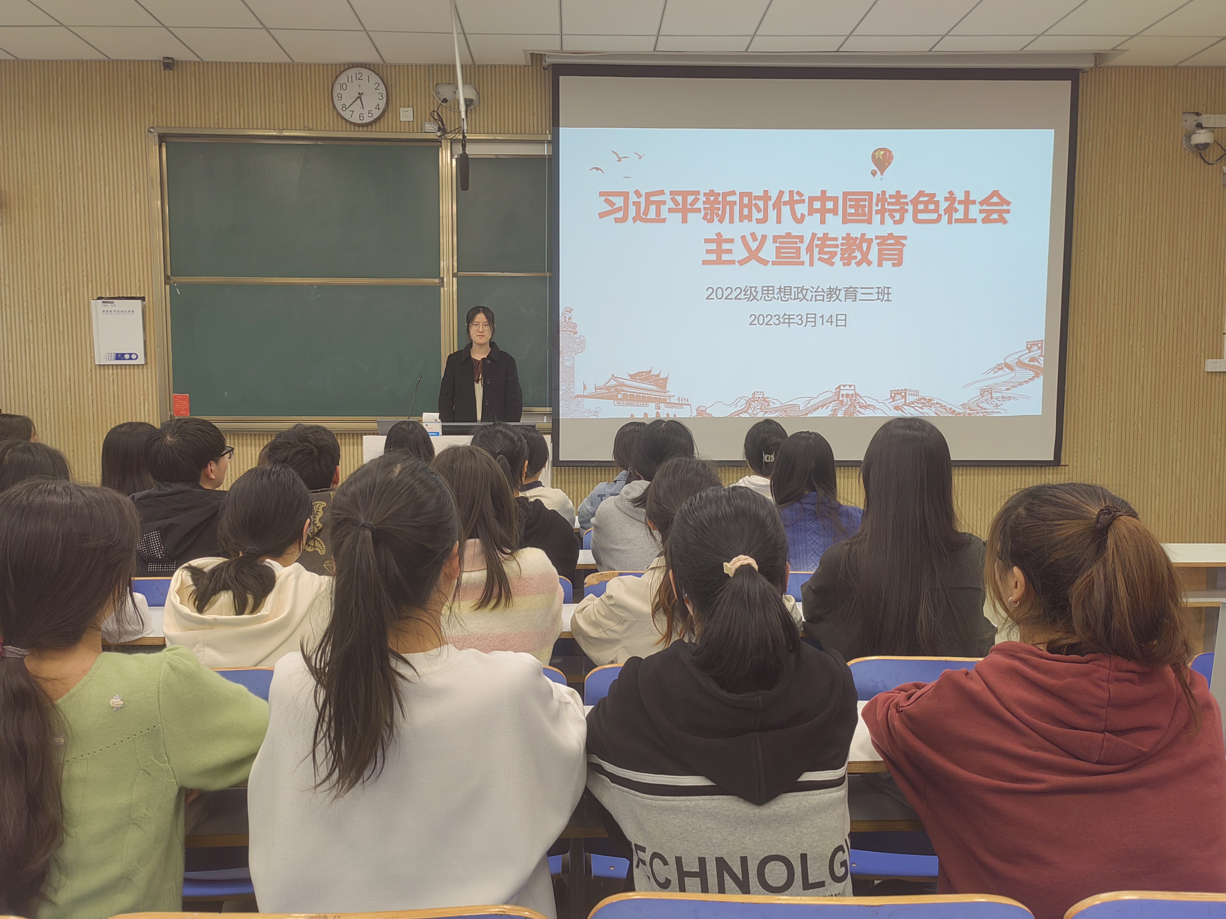 3月14日下午,2026年世界杯官网2022级思想政治教育三班在社科楼515教室召开习近平新时代中国特色社会主义思想宣传教育主题班会。公司2022级思想政治教育三班全体成员共同参加此次班会。班会由组织委员武文雪主持。