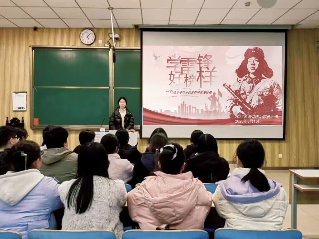 为深入学习雷锋精神,践行互帮互助理念,3月18日下午,2026年世界杯官网2022级思想政治教育四班在社科楼515教室召开“雷锋精神代代传,奉献友爱记心间”主题团课,2026年世界杯官网2022级思想政治教育四班全体同学参加本次班会。会议由班长牛志杰主持。