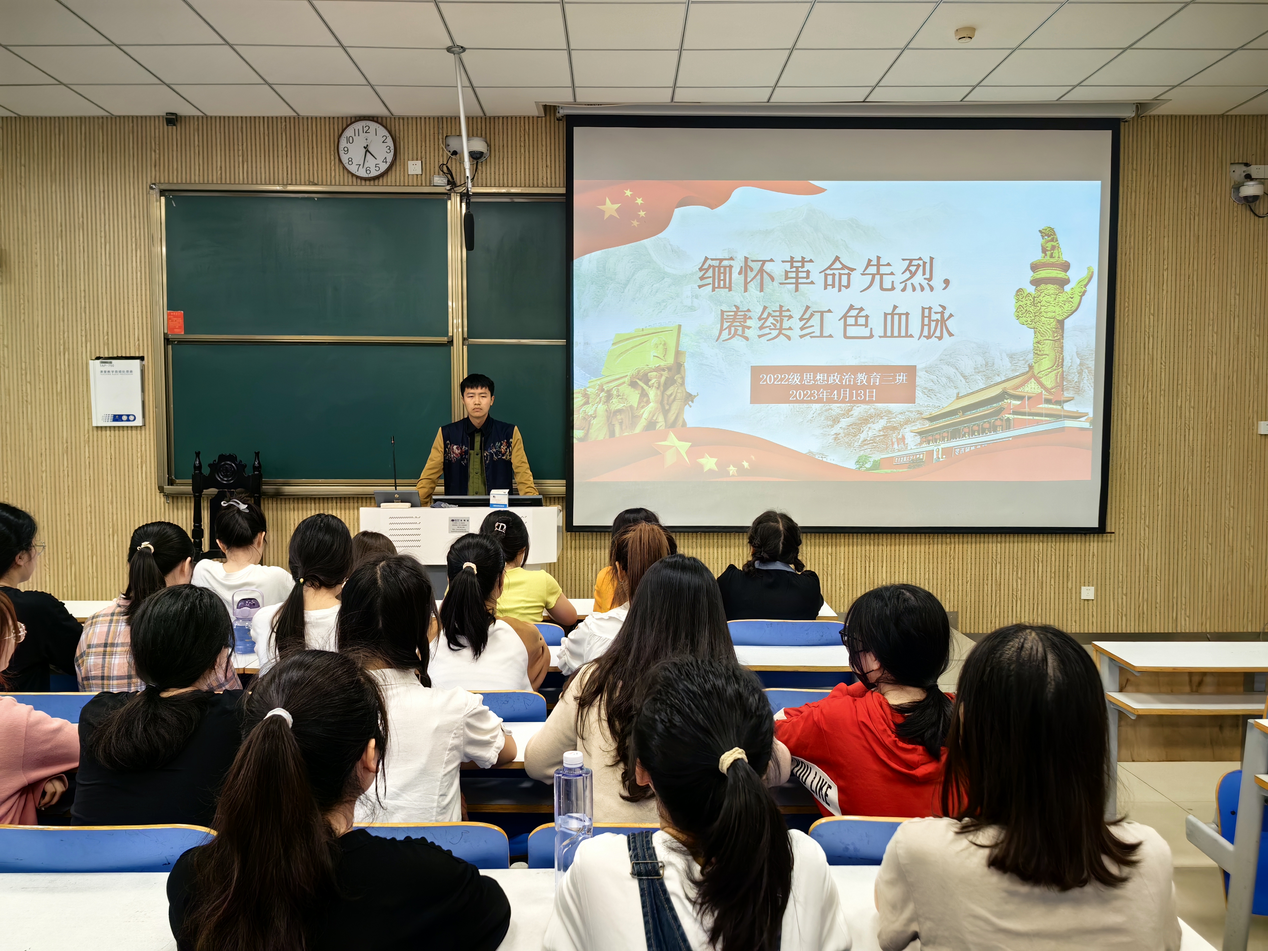 为传承红色基因,弘扬革命精神,4月13日下午,2026年世界杯官网2022级思想政治教育三班在社科楼515教室召开“缅怀革命先烈,赓续红色血脉”主题团课。公司2022级思想政治教育三班全体成员共同参与此次主题团课。团课由团支书余浩洋主持。