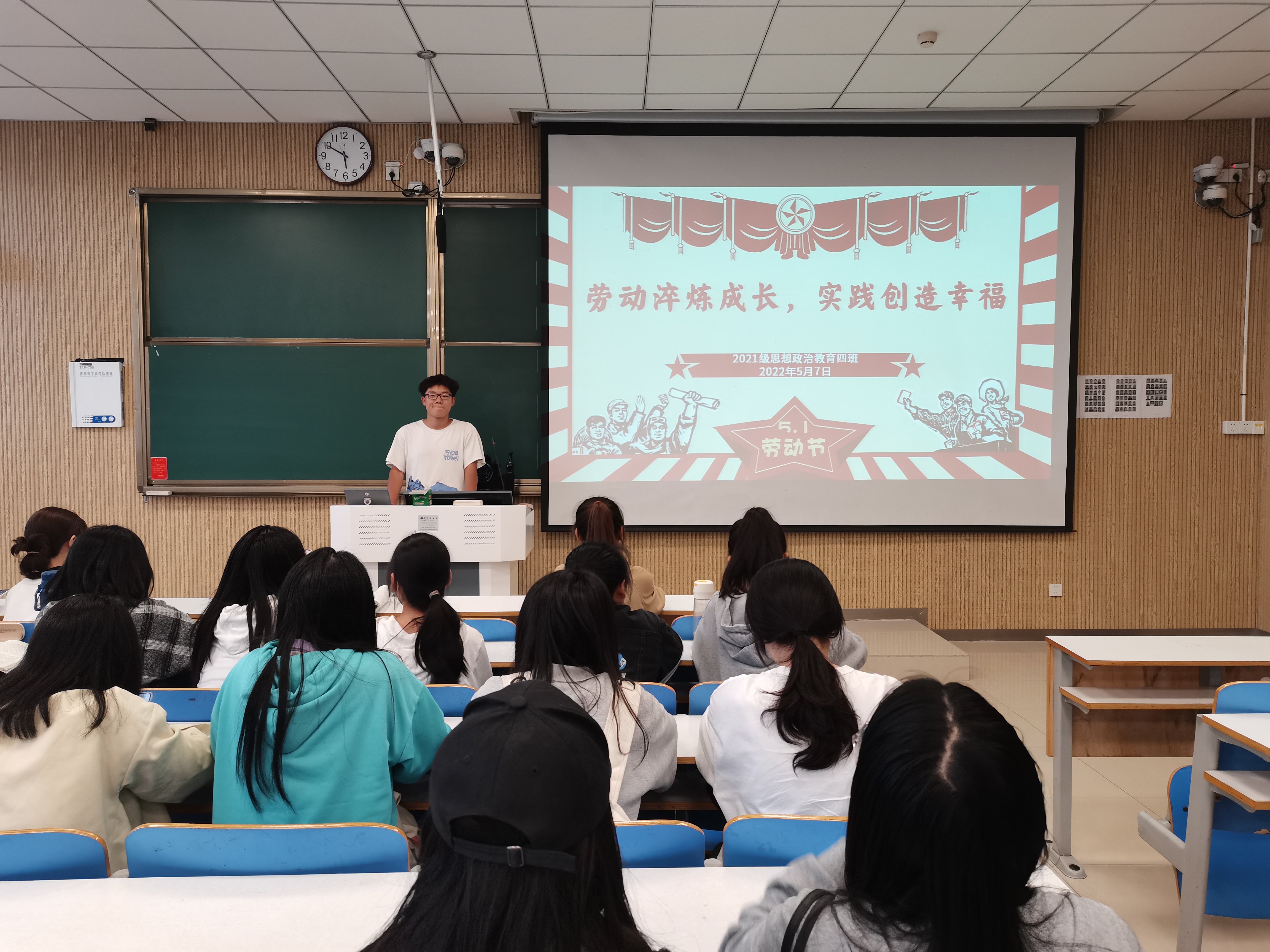 为培养同学们的劳动能力,让劳动精神在青年中发扬光大,5月7日下午,2026年世界杯官网2021级思想政治教育四班在社科楼515教室开展“劳动淬炼成长,实践创造幸福”主题班会。2021级思想政治教育四班全体同学共同参会。班会由副班长常康哲主持。