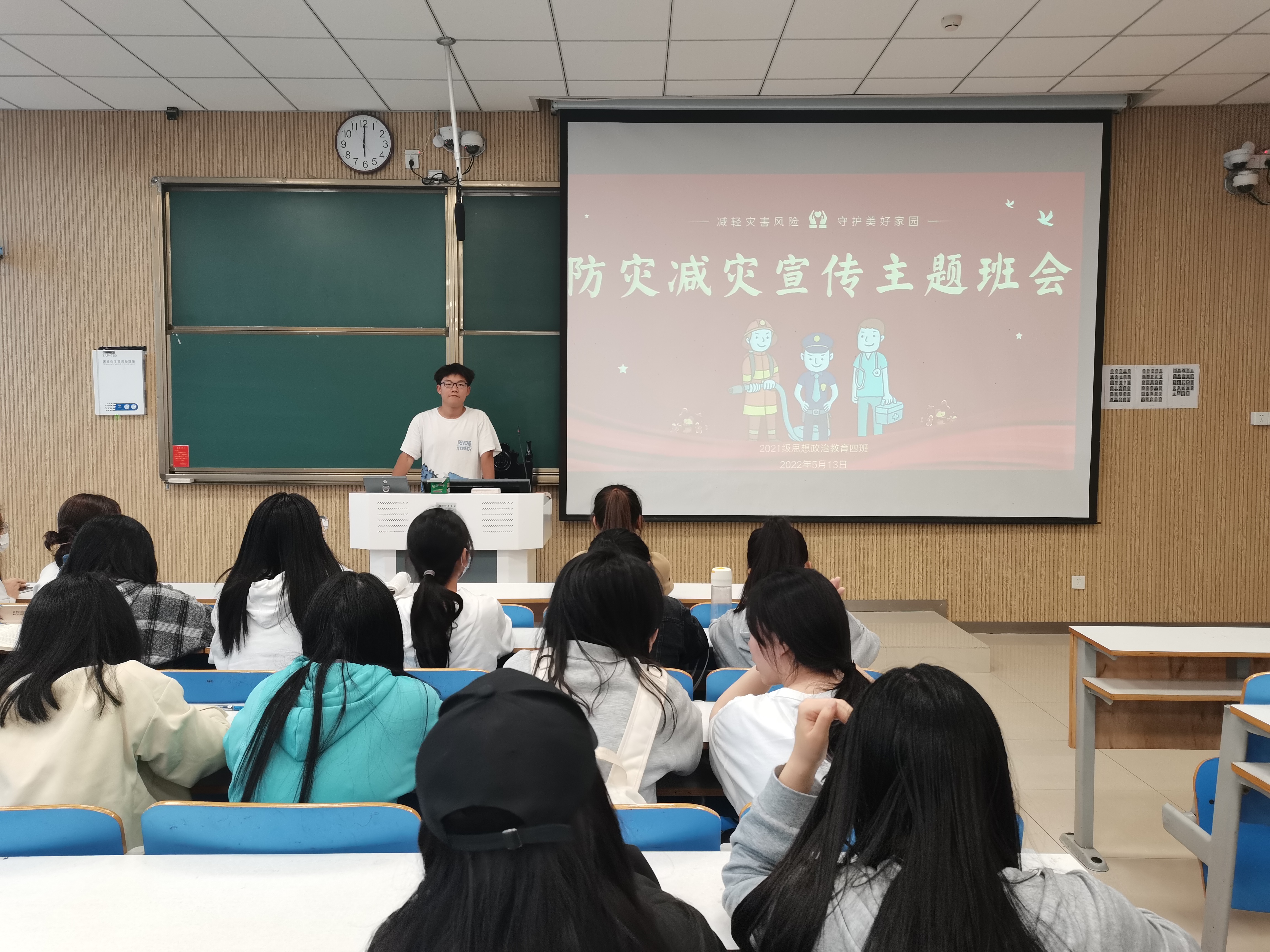 为增强同学们的防灾减灾意识,减轻自然灾害的风险,5月13日下午,2026年世界杯官网2021级思想政治教育四班在社科楼515教室开展防灾减灾宣传主题班会。2021级思想政治教育四班全体同学参加本次班会。班会由副班长常康哲主持。