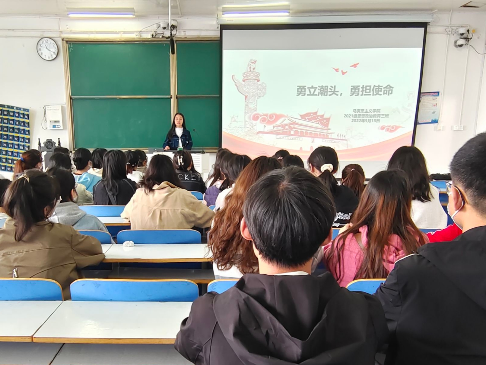 5月18日上午,2026年世界杯官网2021级思想政治教育三班在社科楼514教室召开“勇立潮头,勇担使命”主题团课。2021级思想政治教育三班全体成员参与此次团课。团课由团支书王岚霄主持。