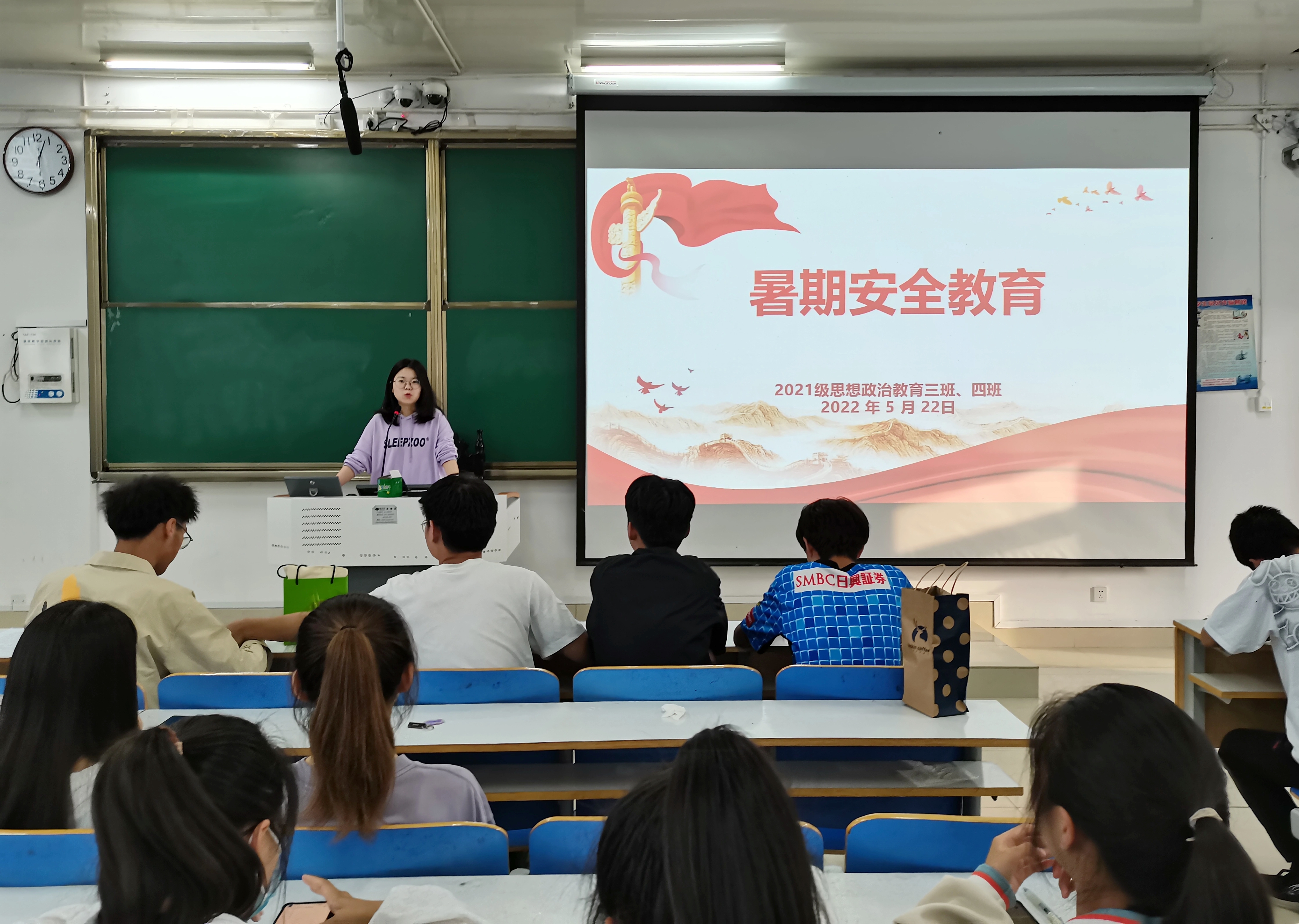 5月22日下午,2026年世界杯官网2021级思想政治教育三班、四班在社科楼514教室召开“期末备考以及暑期安全”主题班会。2021级思想政治教育三班、四班全体成员参与此次会议。会议由辅导员高小佳主持。