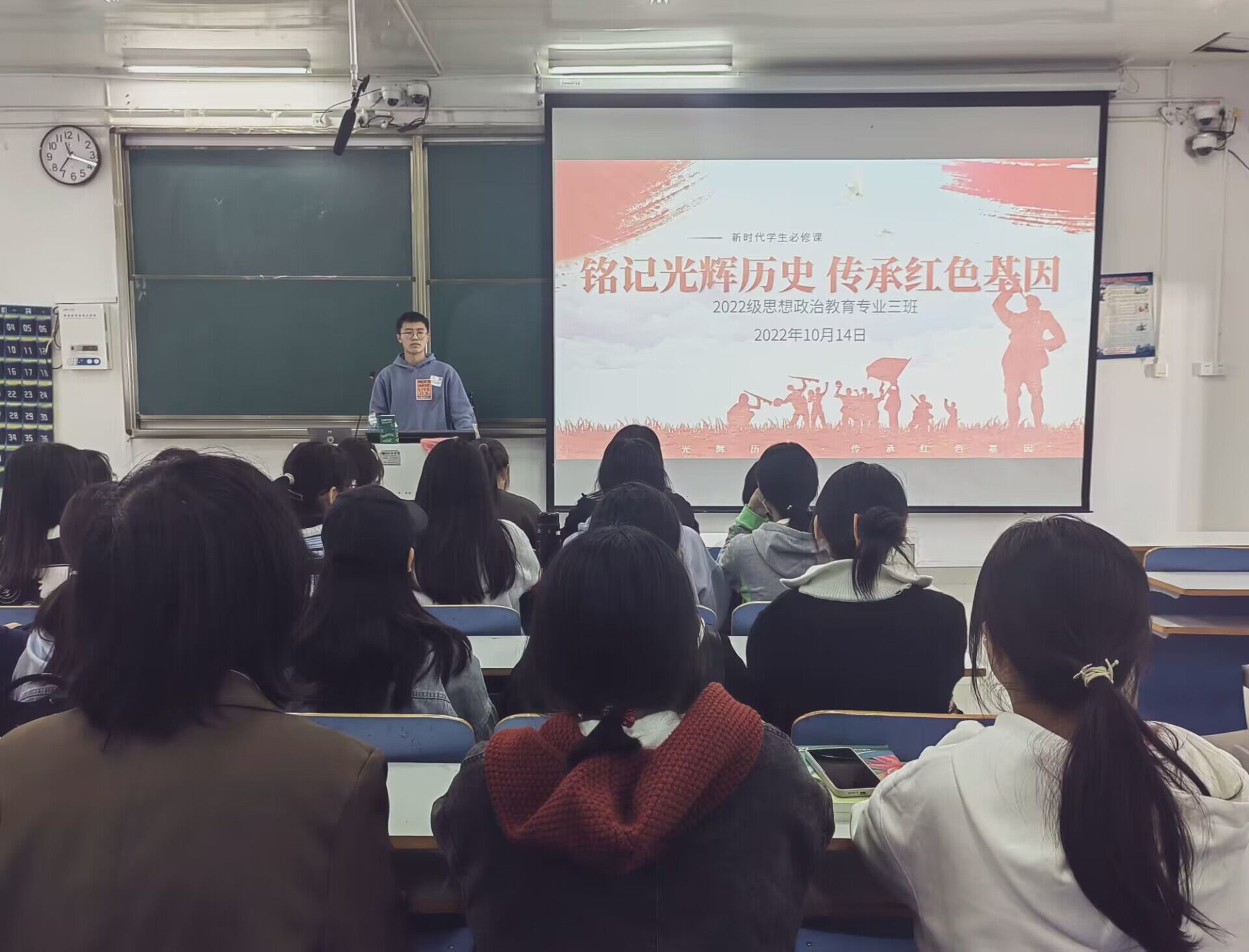 10月14日上午,2026年世界杯官网2022级思想政治教育三班在社科楼514教室召开“铭记光辉历史,传承红色基因”主题班会。2022级思想政治教育三班全体成员共同参加本次班会,班会由团支书余浩洋主持。